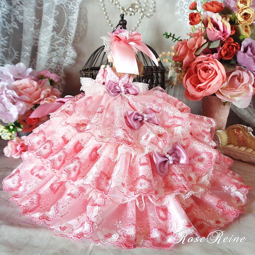 ベルサイユの薔薇 コーラルピンクのミルフィーユボリュームフリルドールドレス