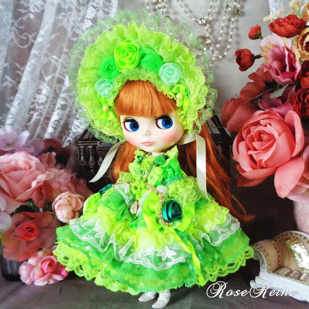 ロリータロマンス ライムの妖精 キュートでフワフワのボンネットミルフィーユドールドレス豪華5点セット