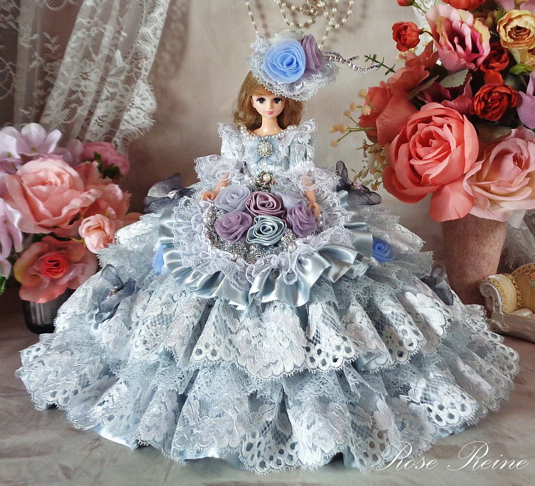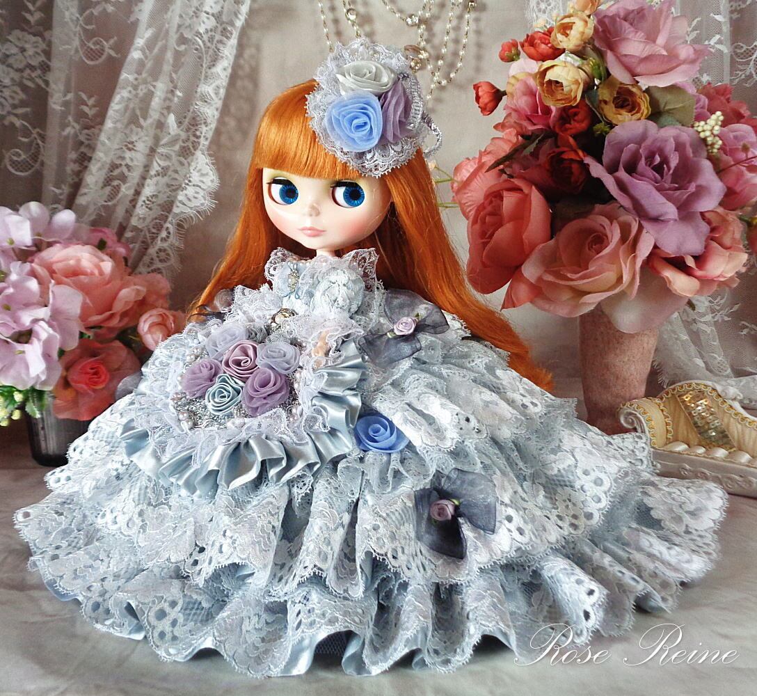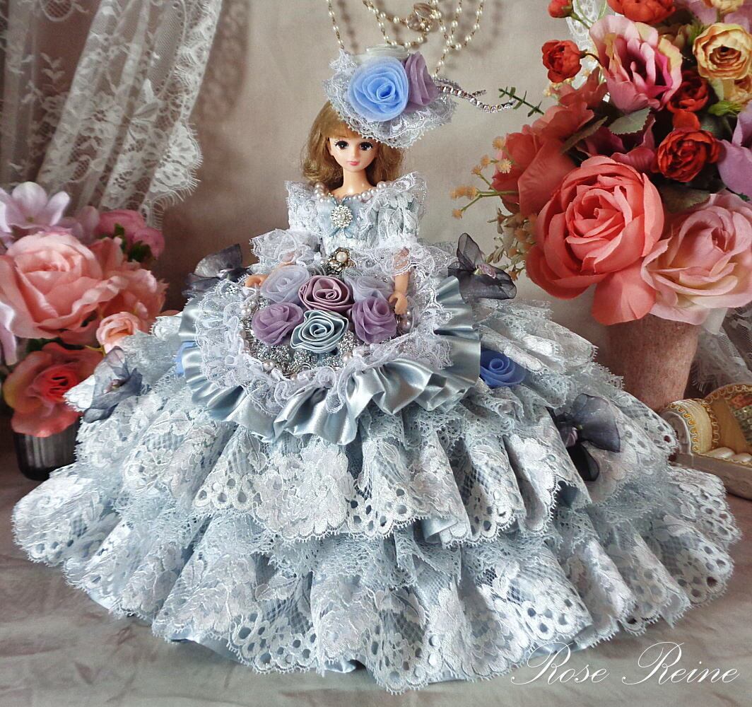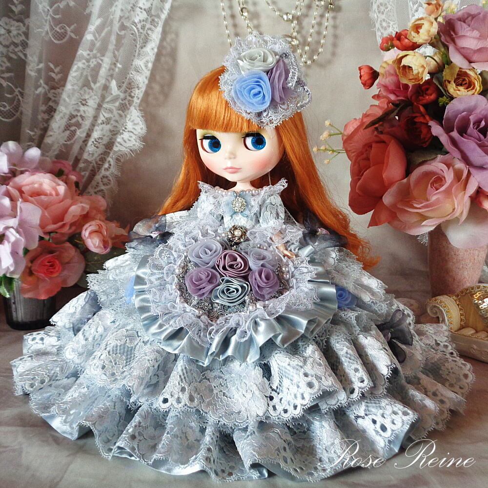 エリザベス女王 夕暮れの花園シャイニーグレーの10段フリルボリュームドールドレス豪華4点セット