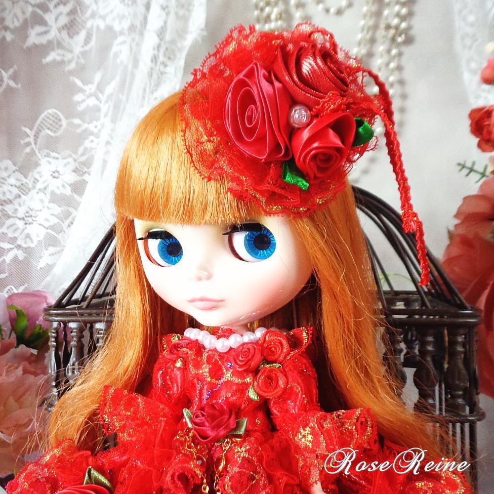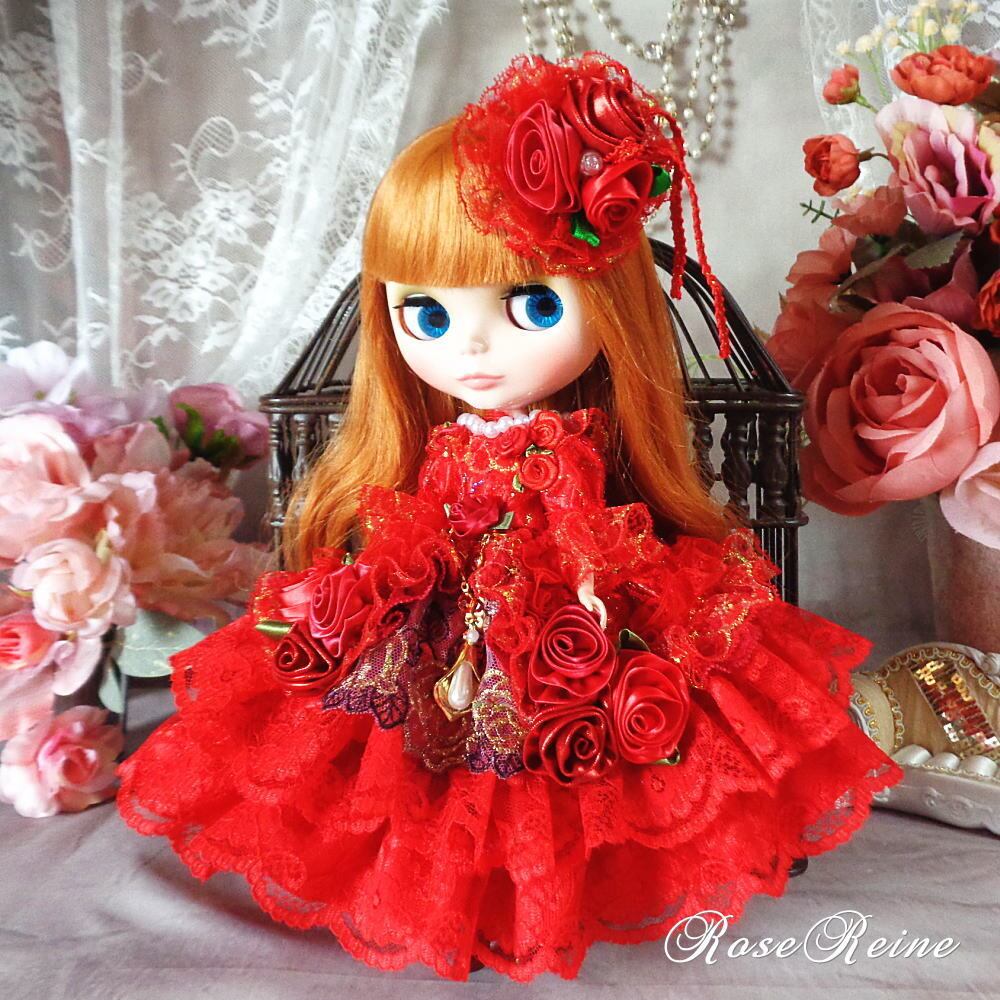 フリルいっぱいの豪華ドレスに赤い薔薇の