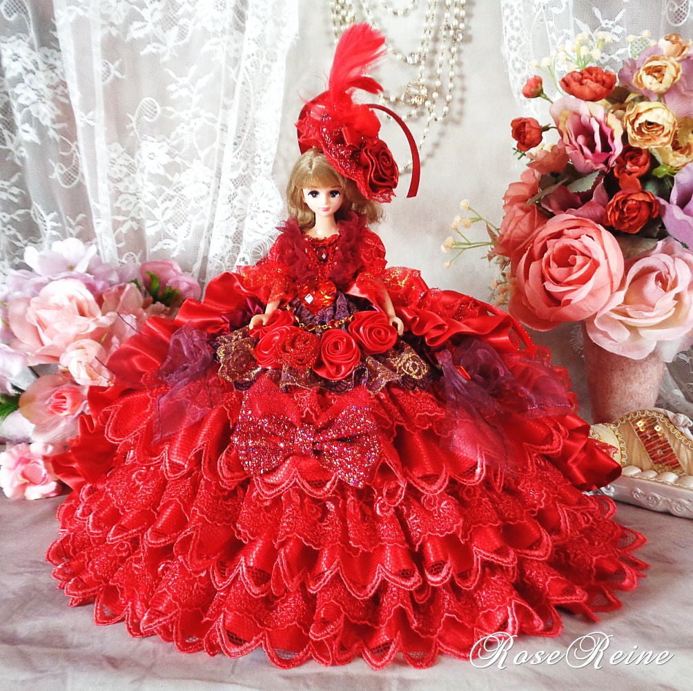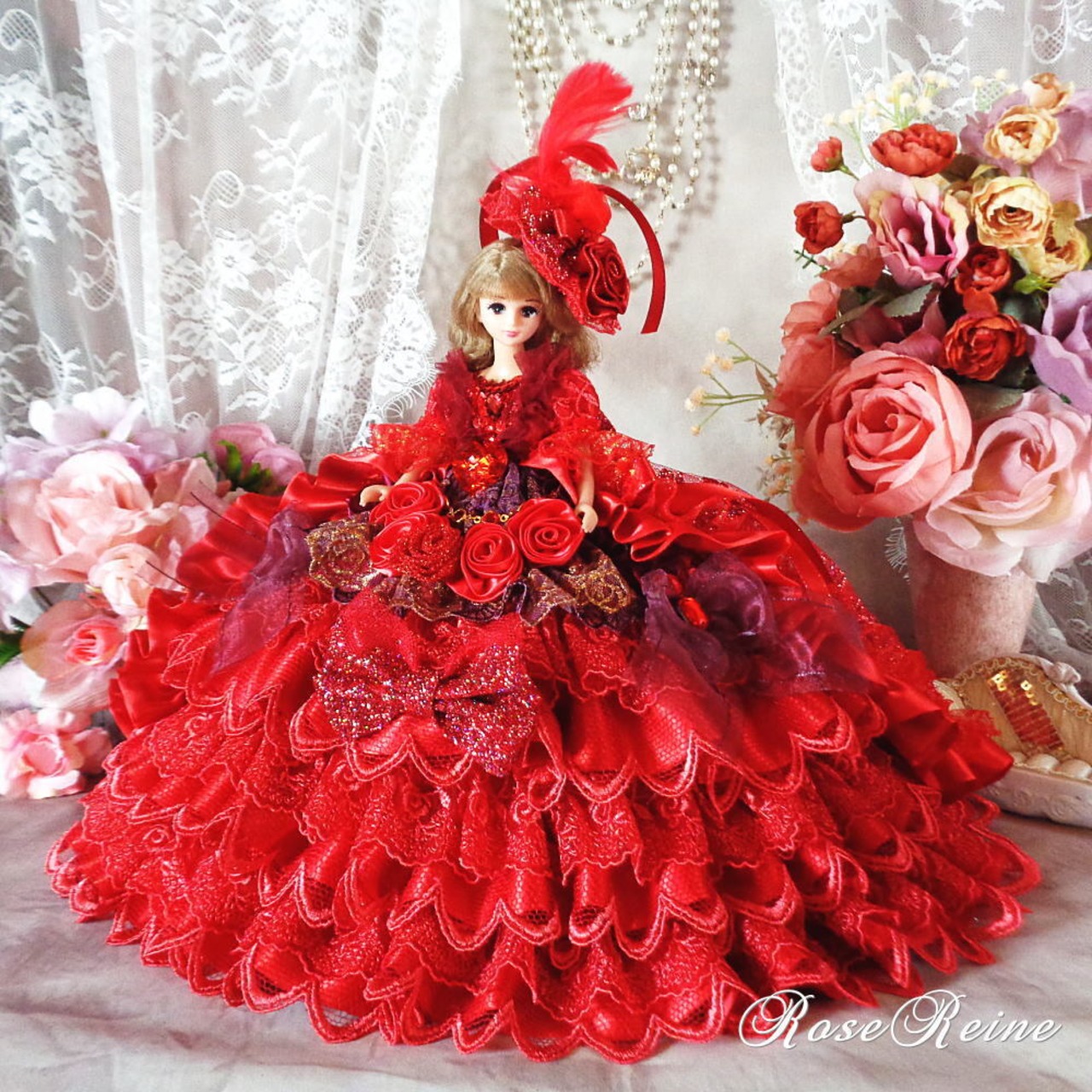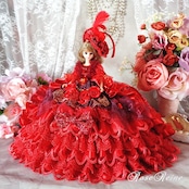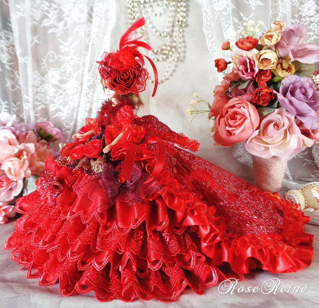 アンネローゼ王妃 至高の紅 スパンコールチュールのオーバートレーンドールドレス