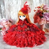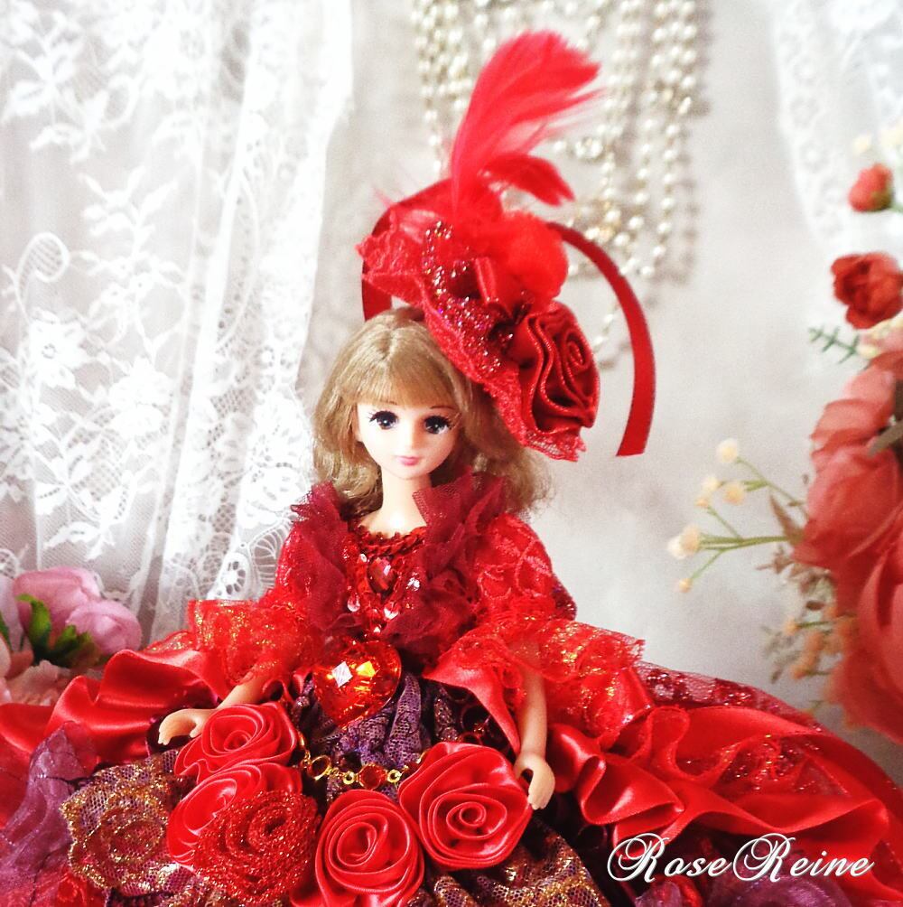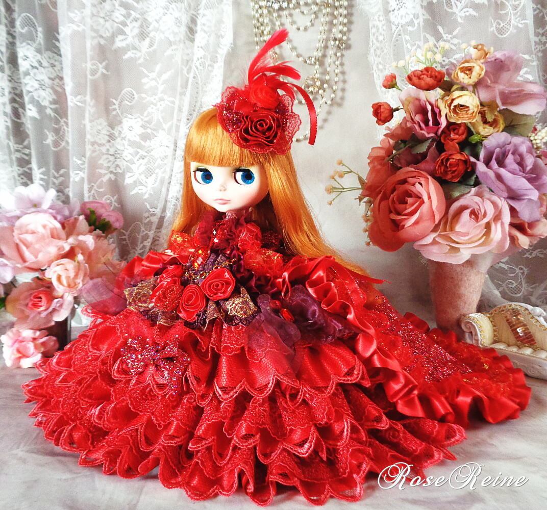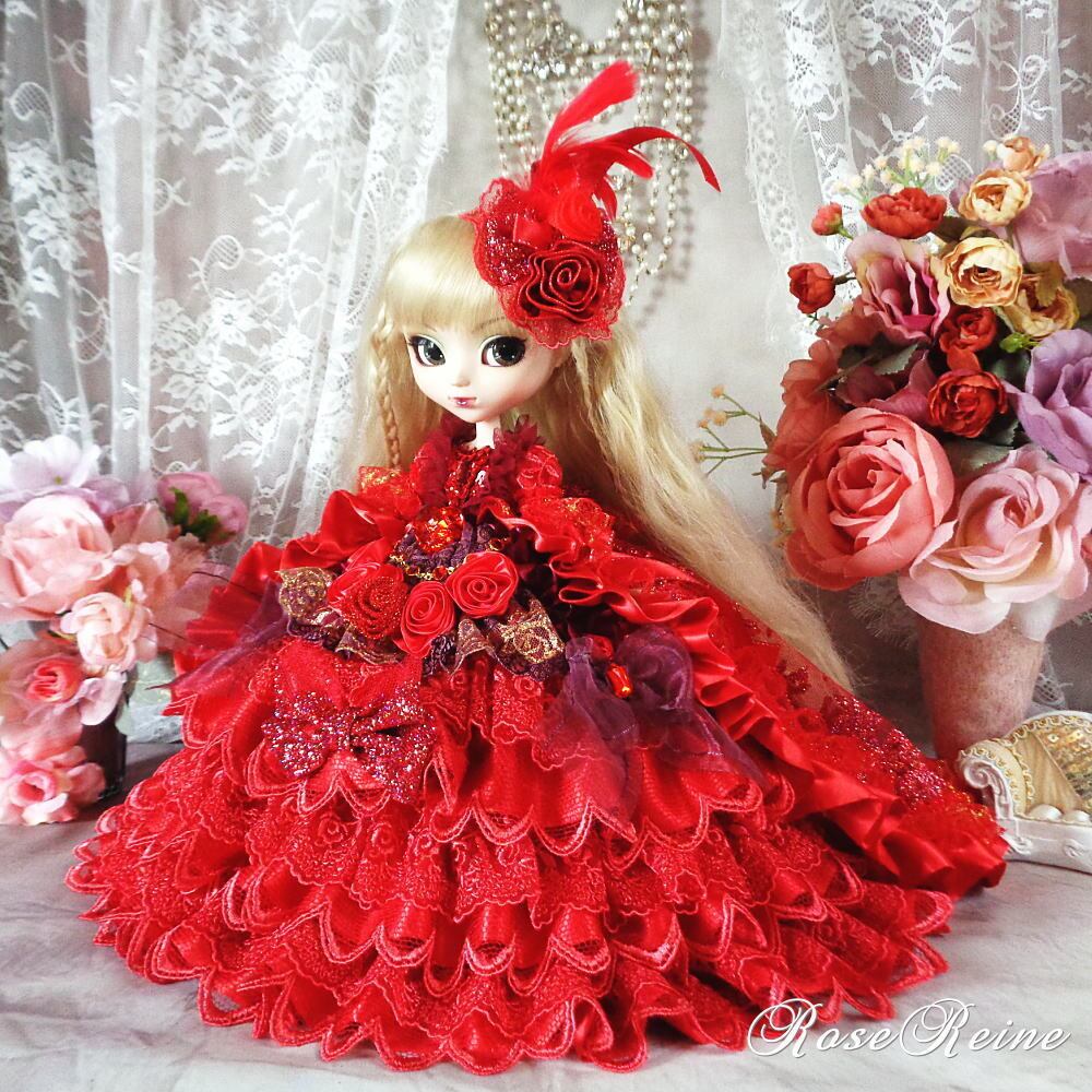 アンネローゼ王妃 至高の紅 スパンコールチュールのオーバートレーンドールドレス