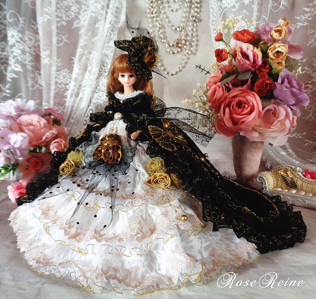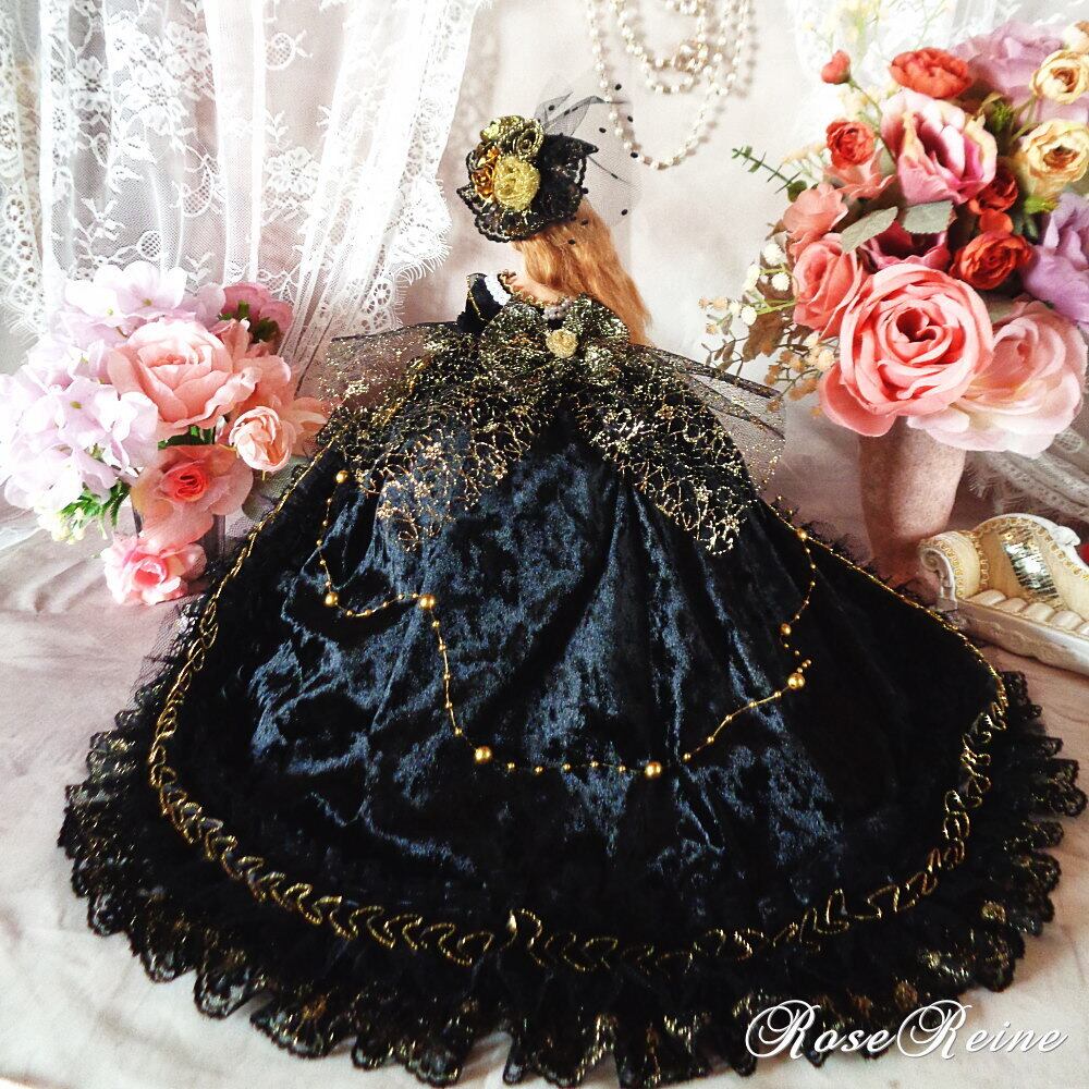 ヴィクトリア王妃 漆黒の魅惑 なめらかな艶感ベロアのロングトレーンドールドレス
