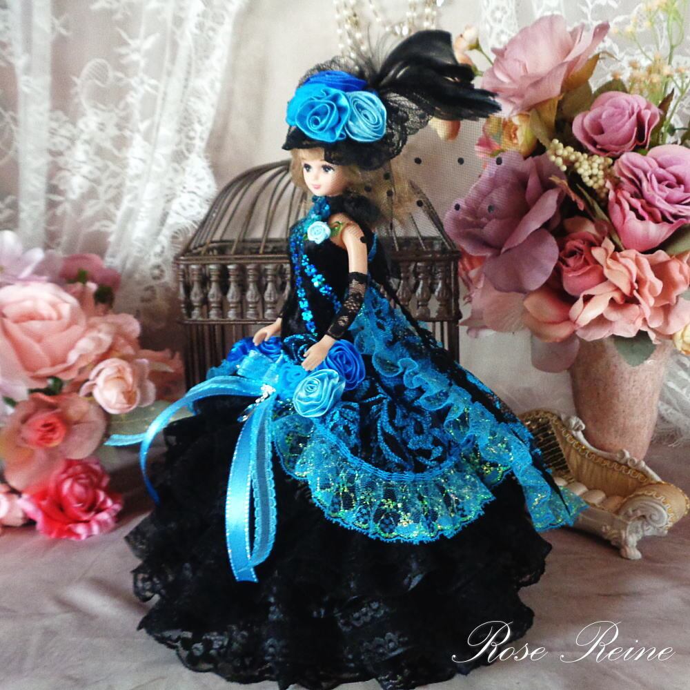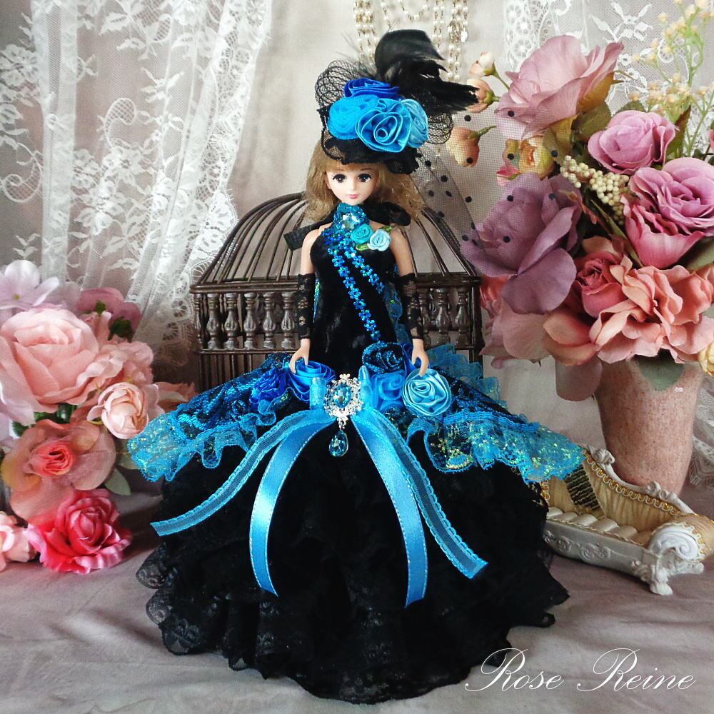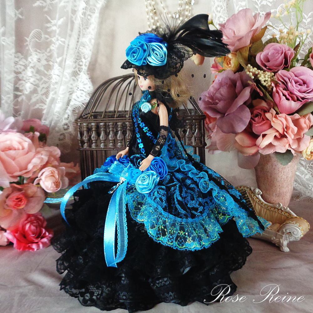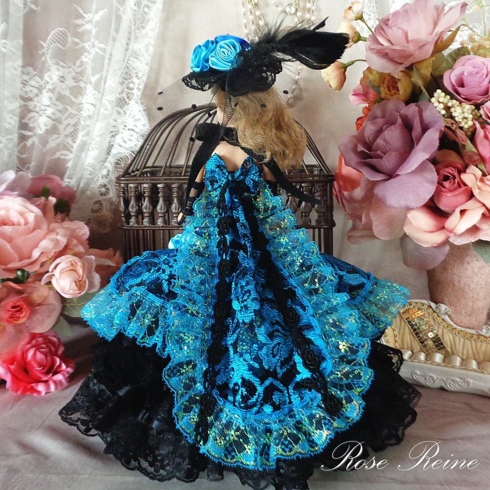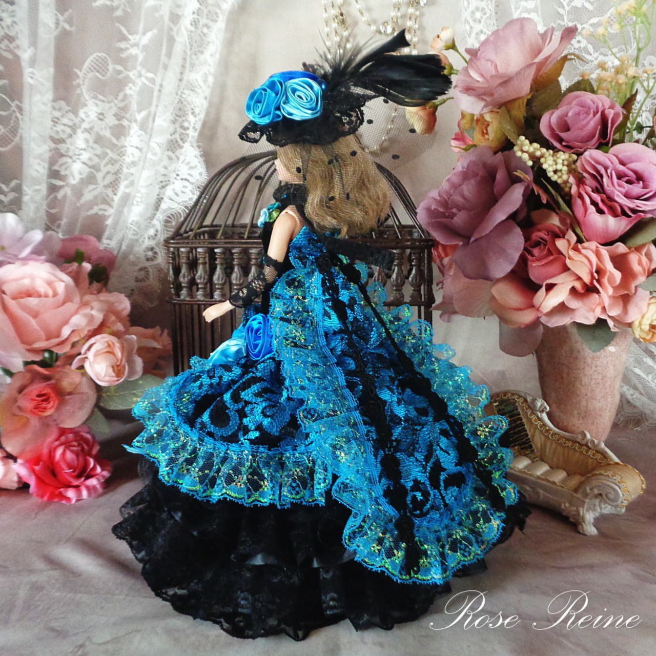 夜空に煌めくブラック&ターコイズの希少クラシックマーメイドドールドレス