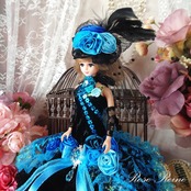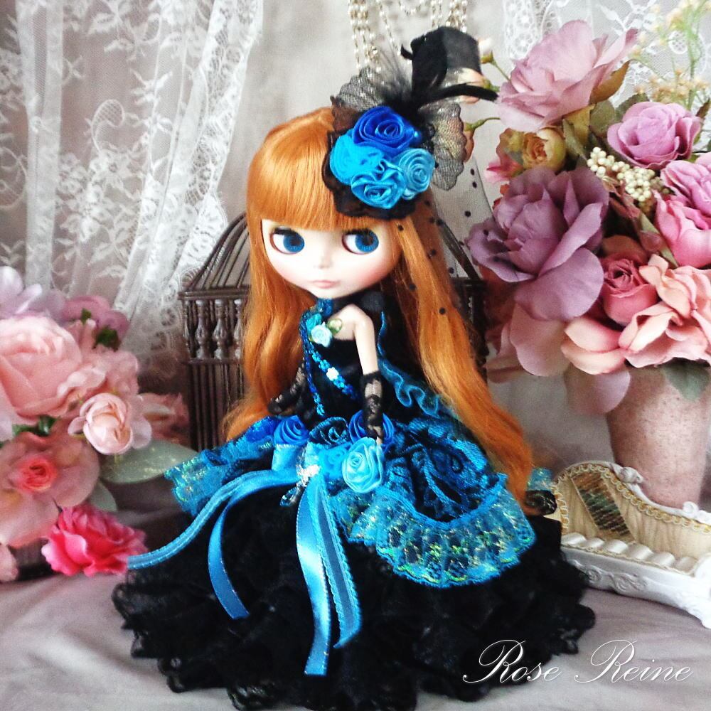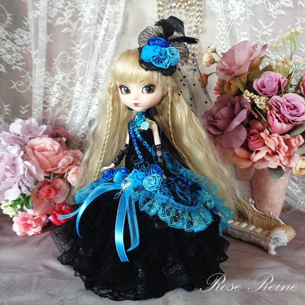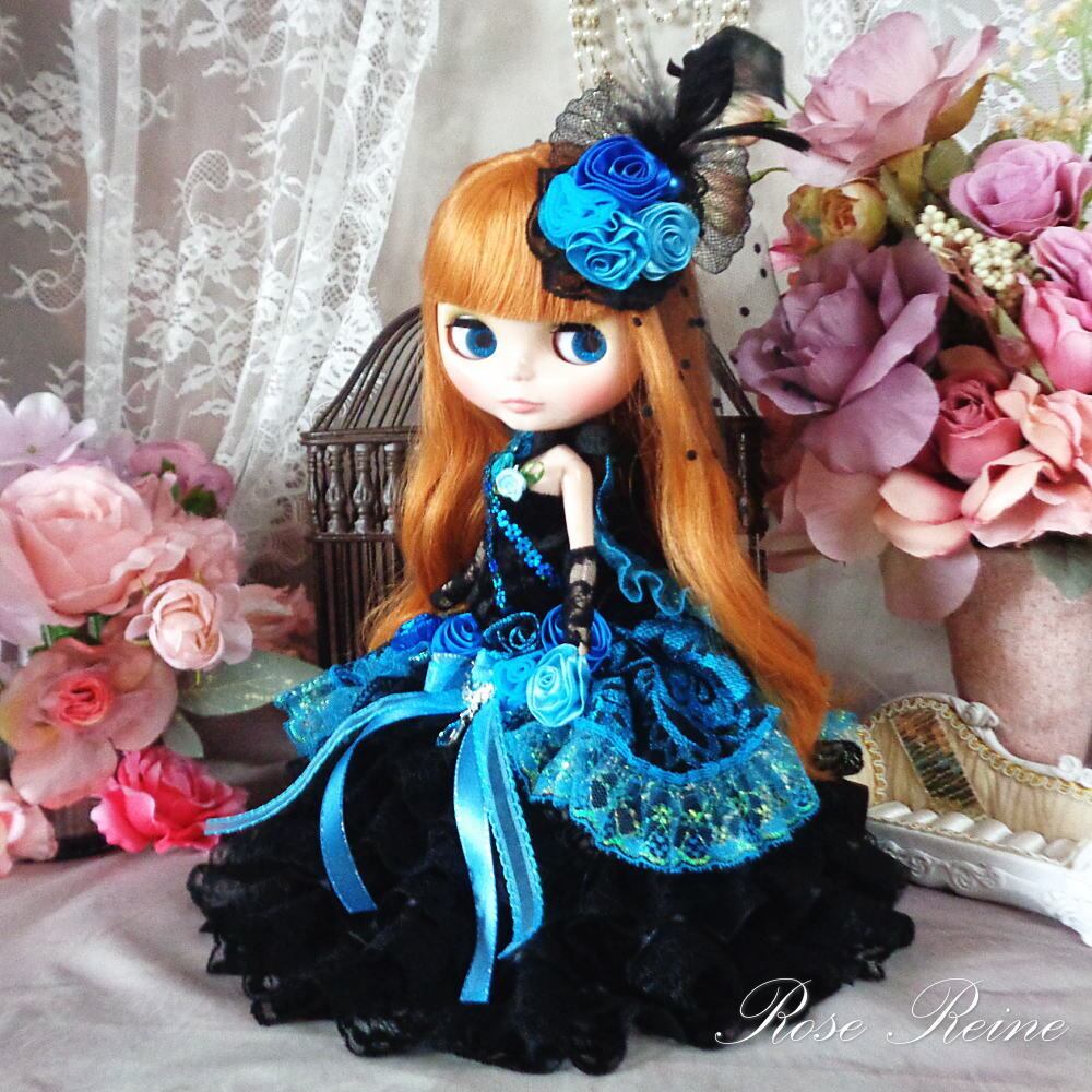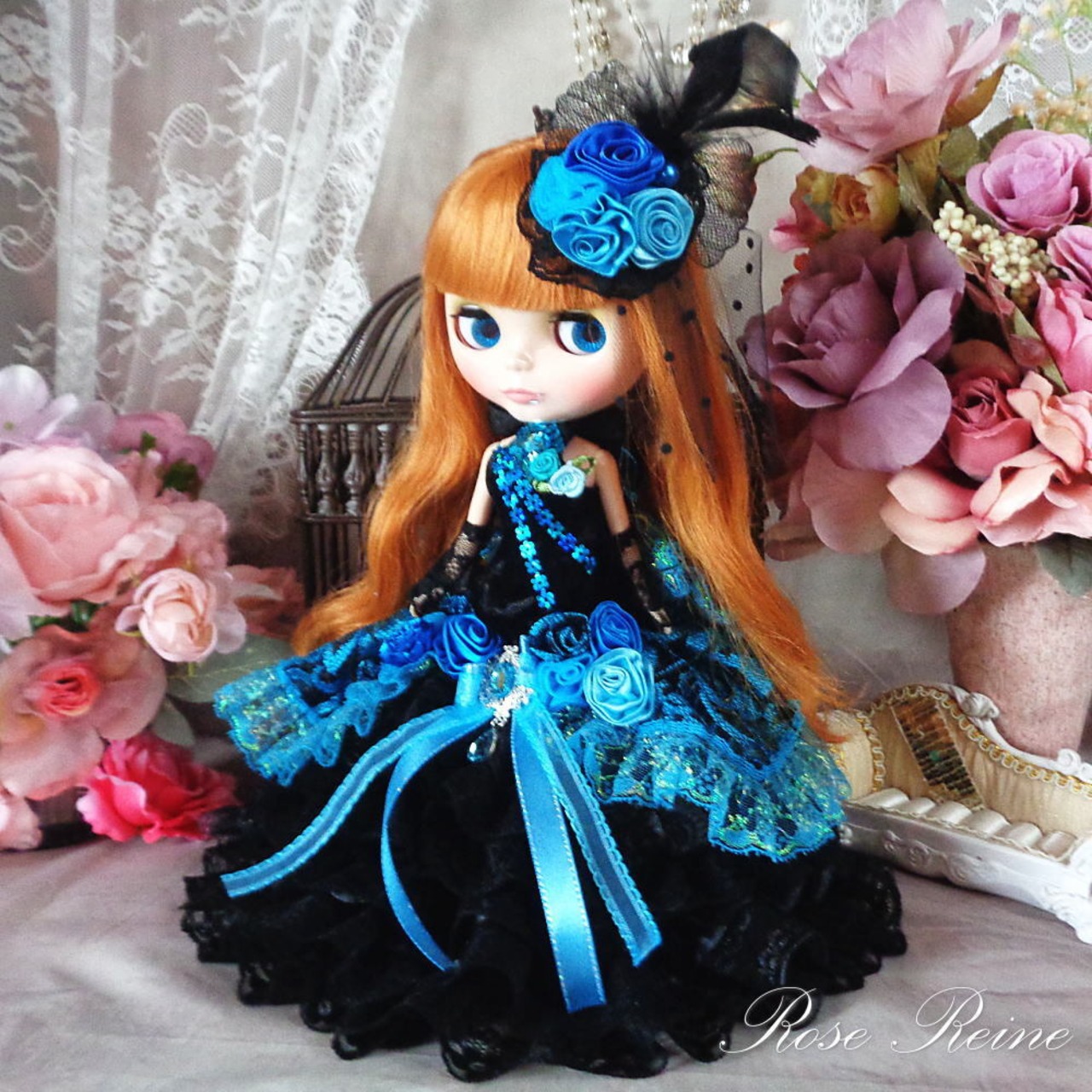 夜空に煌めくブラック&ターコイズの希少クラシックマーメイドドールドレス