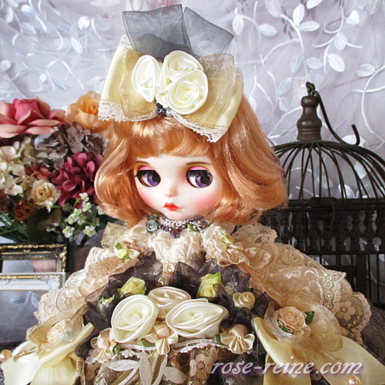 パールやリボン、薔薇の花々などの装飾が