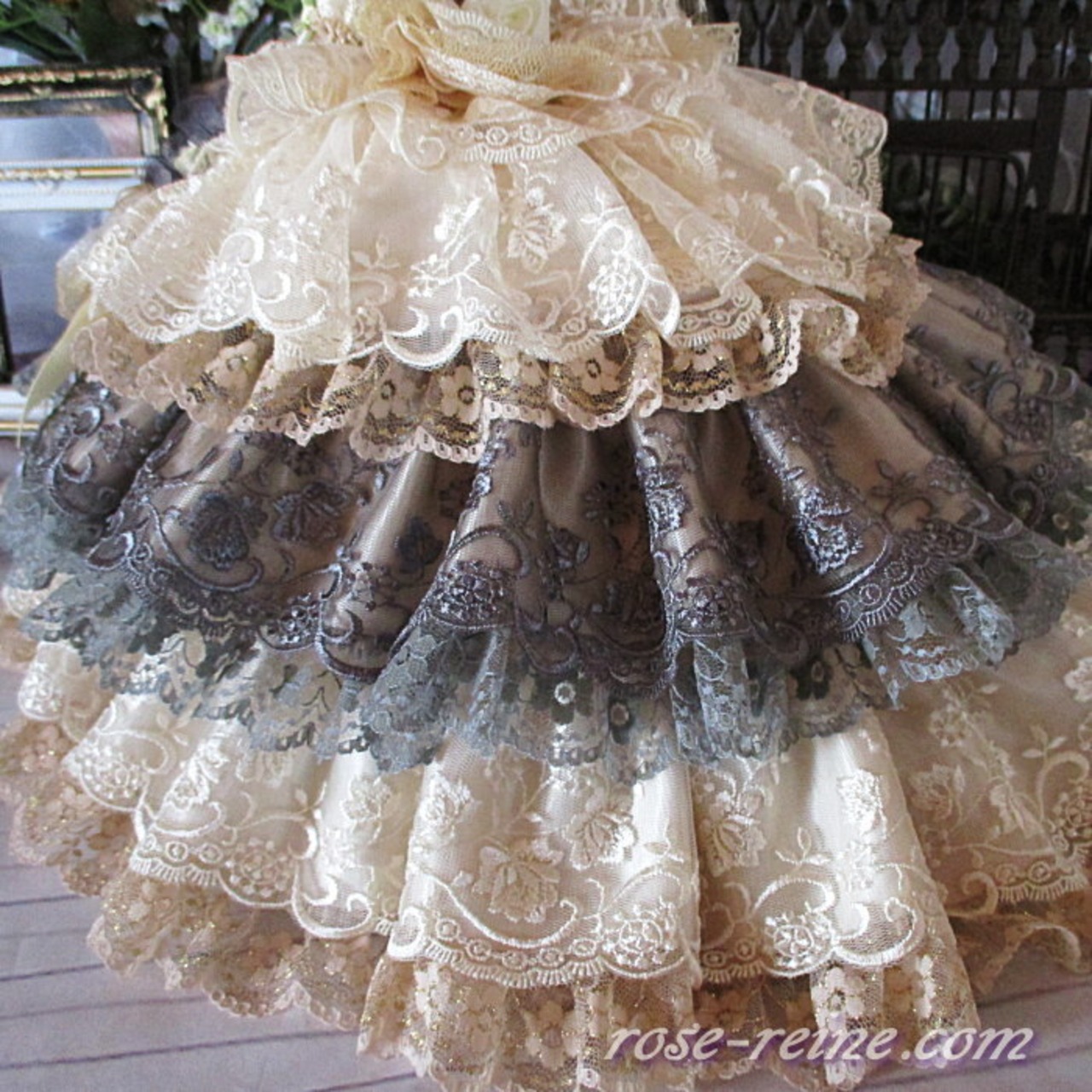 布地レース、装飾等を使用して心をこめて