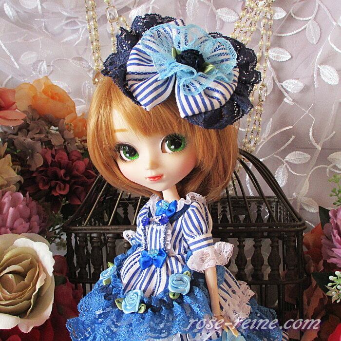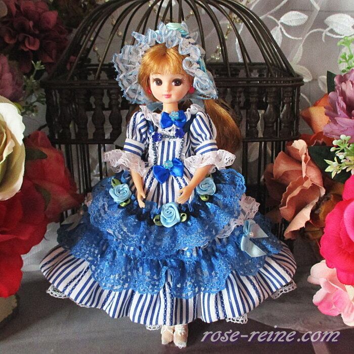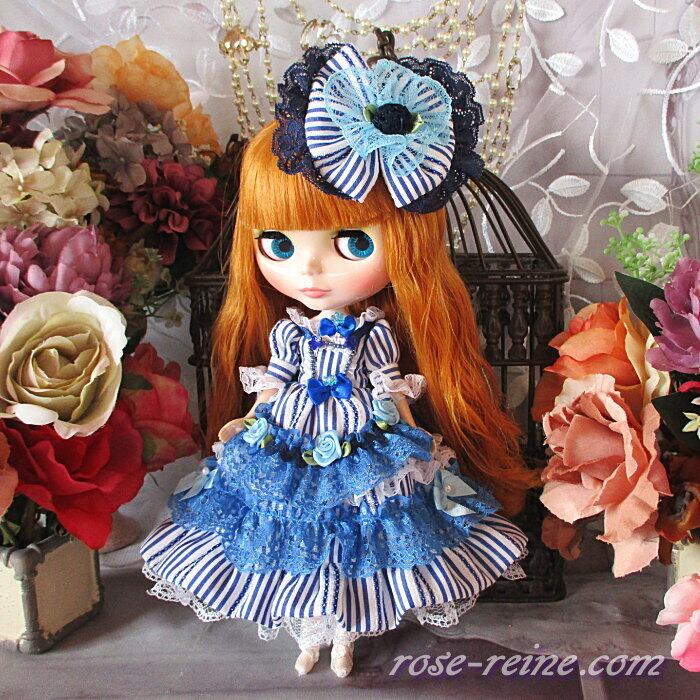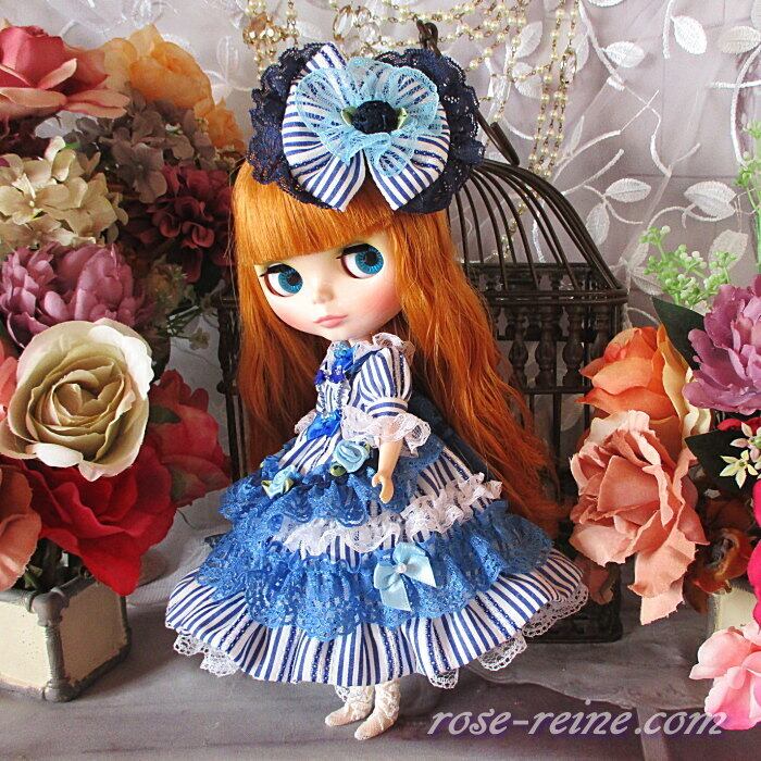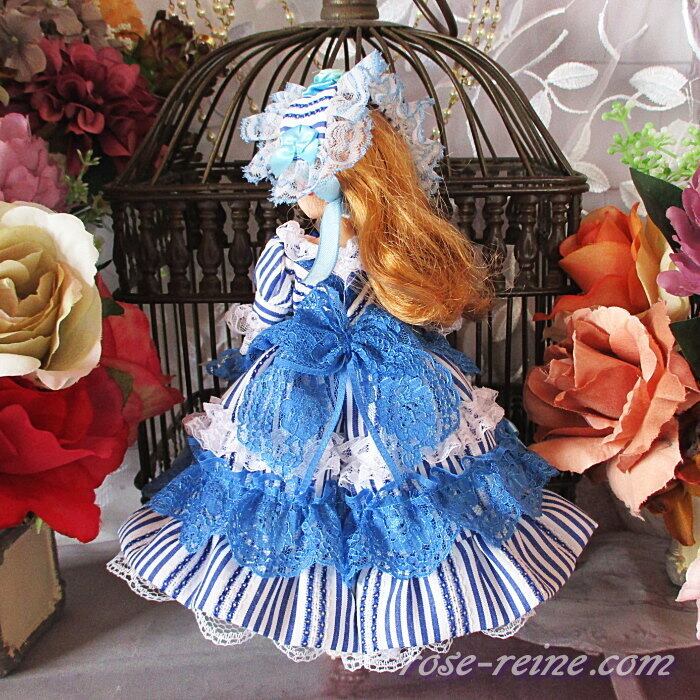 アリスの世界へ誘うブルーストライプのロリータメイドワンピース 豪華5点セット