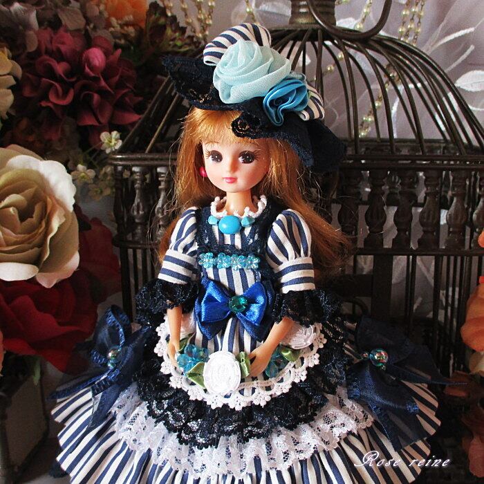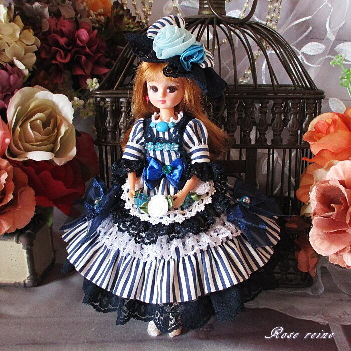 アリスの世界へ誘うブルーストライプのクラシカルワンピース 豪華4点セット