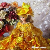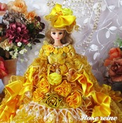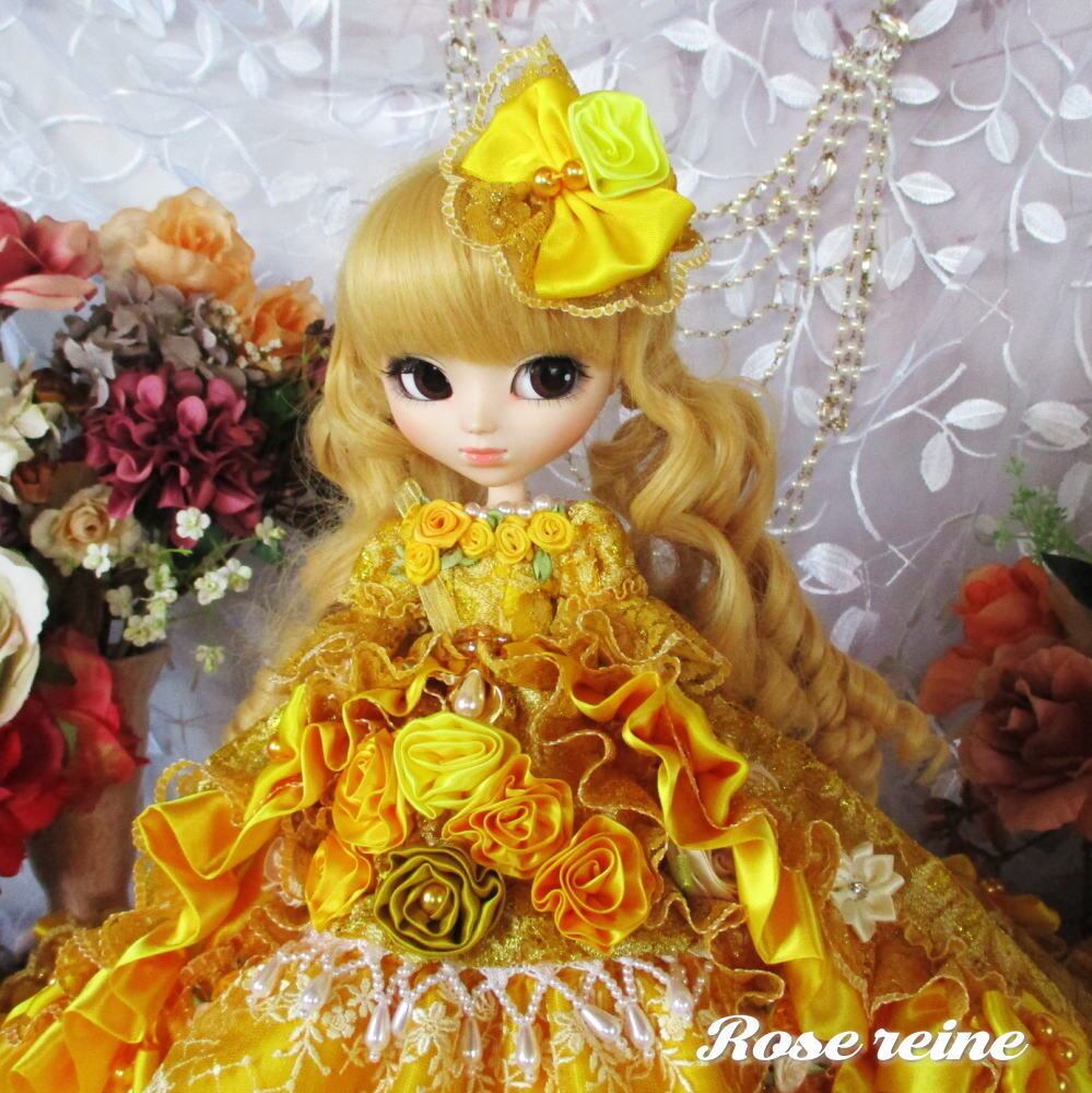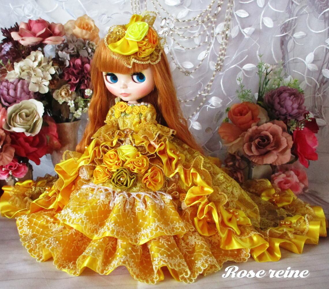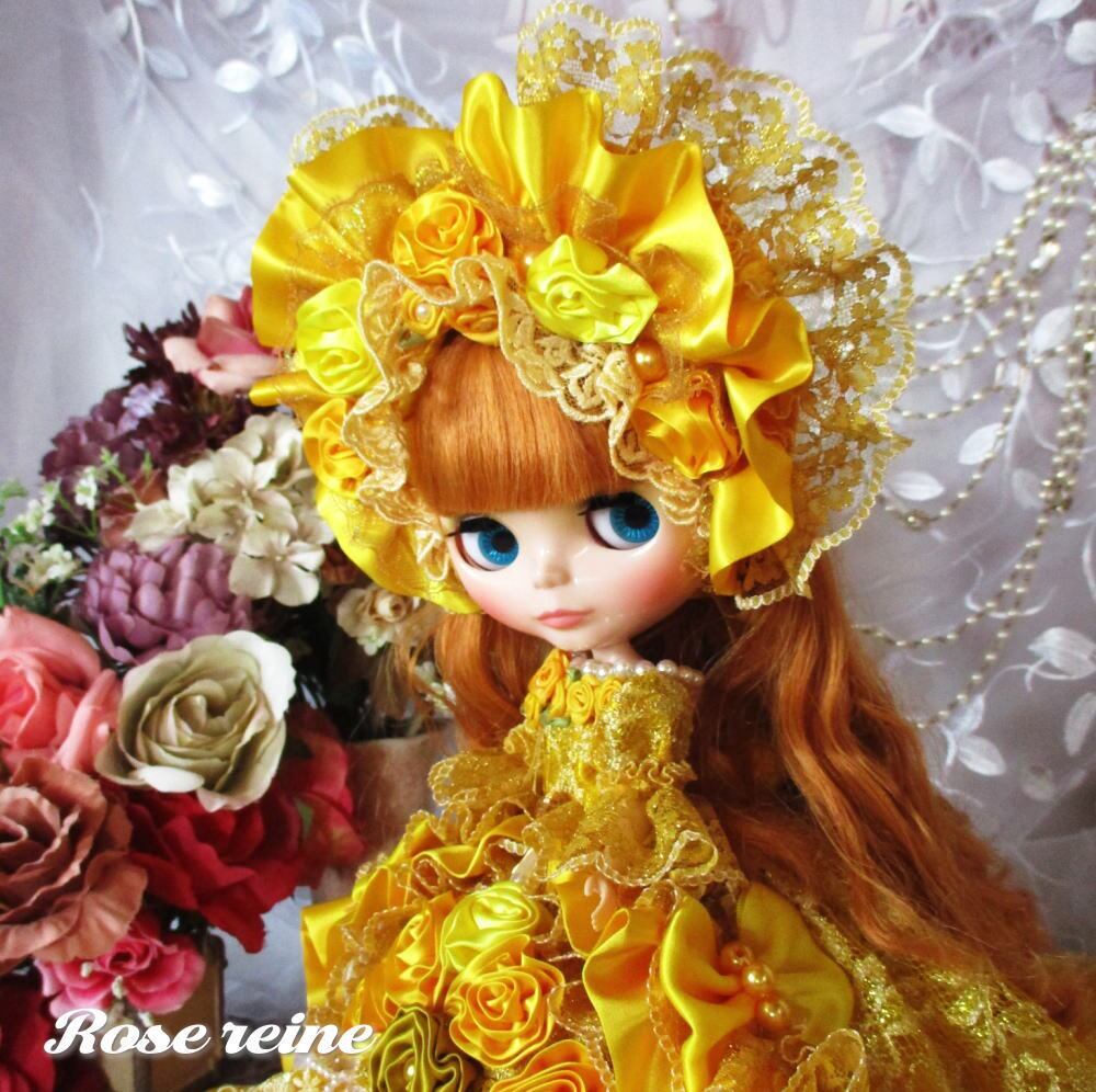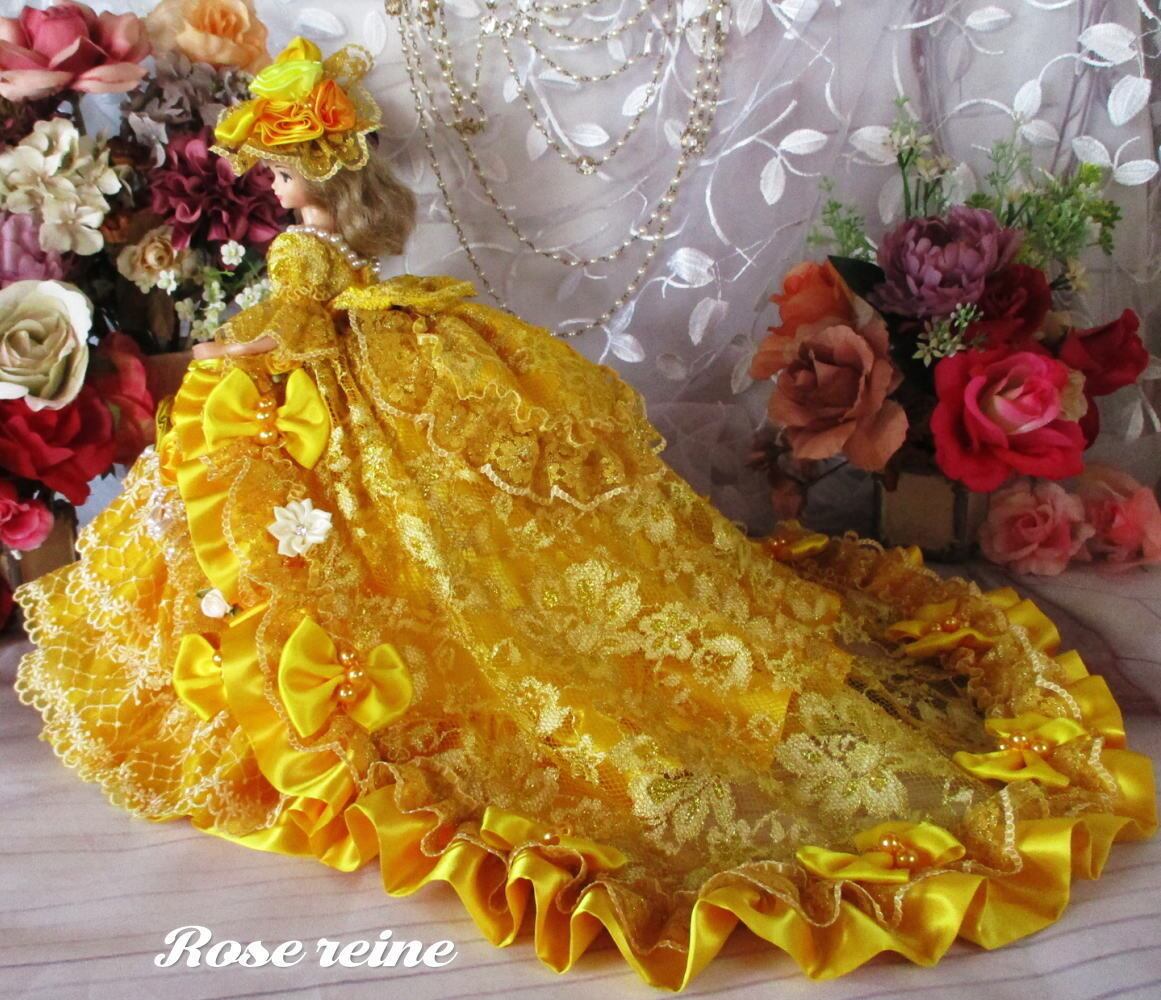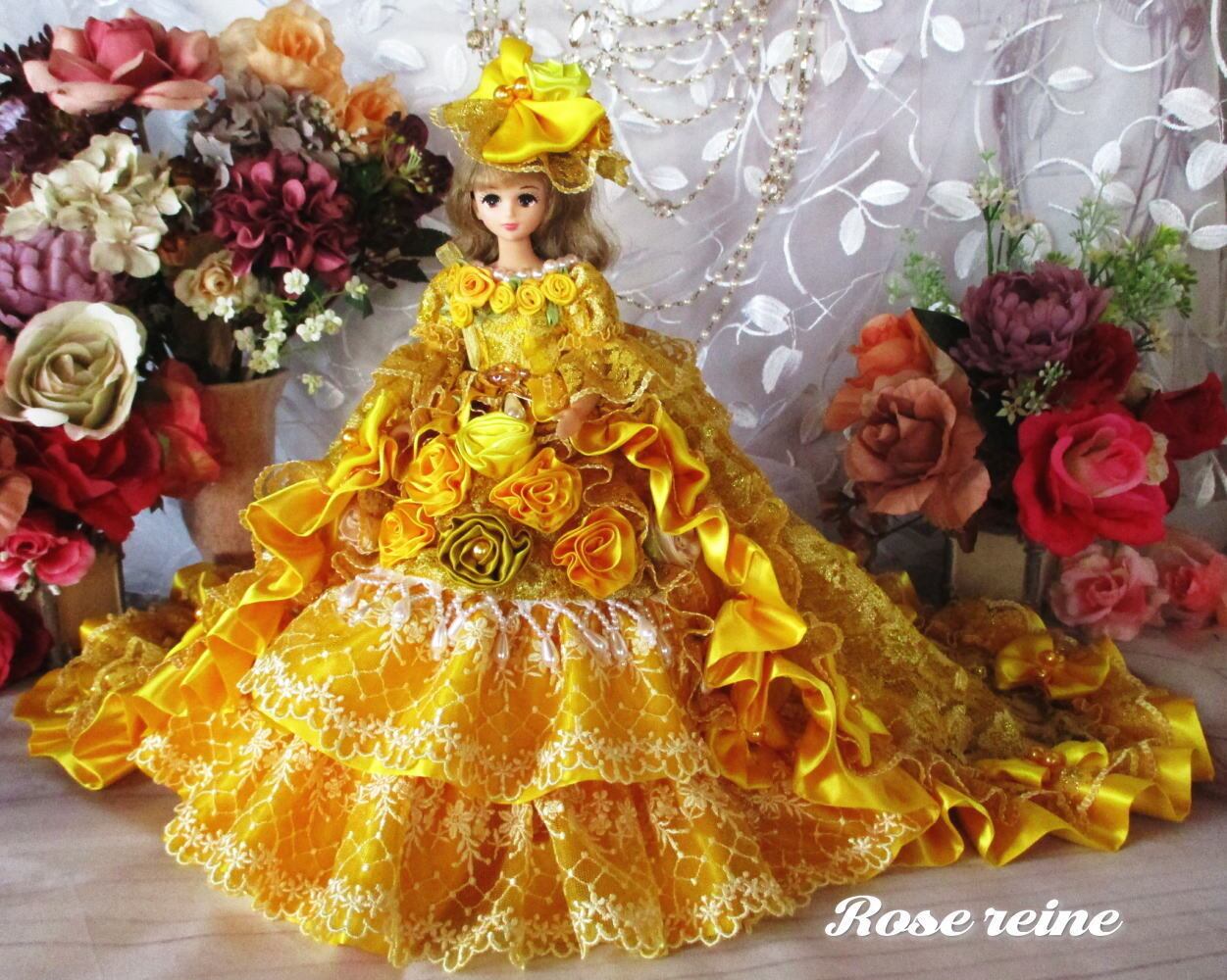 アンネローゼ王妃 咲き誇るイエローゴールドの輝き 魅惑のボンネットロングトレーンドールドレス 豪華4点セット
