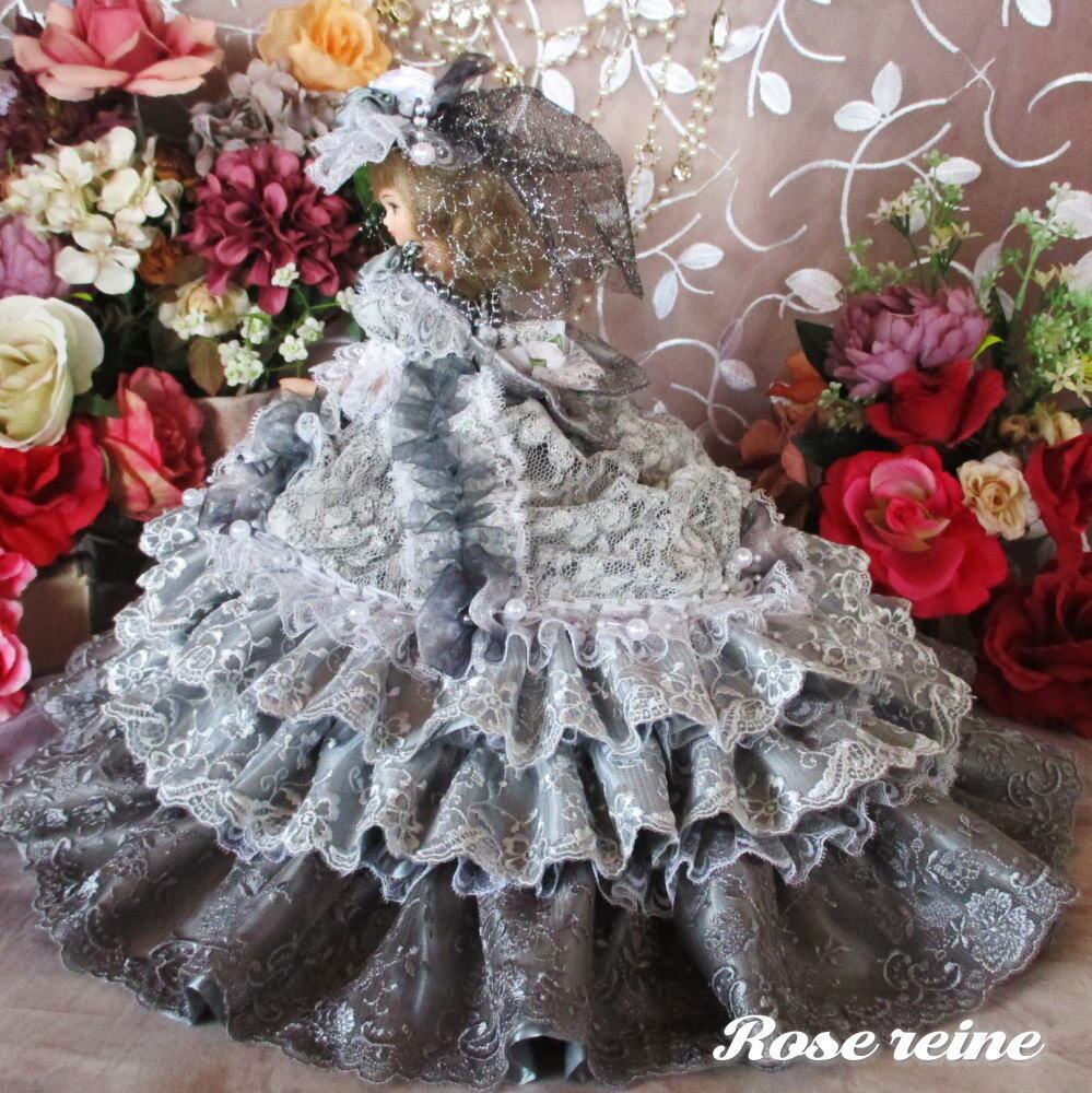 麗しのエリザベス王妃 ロイヤルグレーが高貴で可憐な豪華ボリュームミルフィーユドールドレス