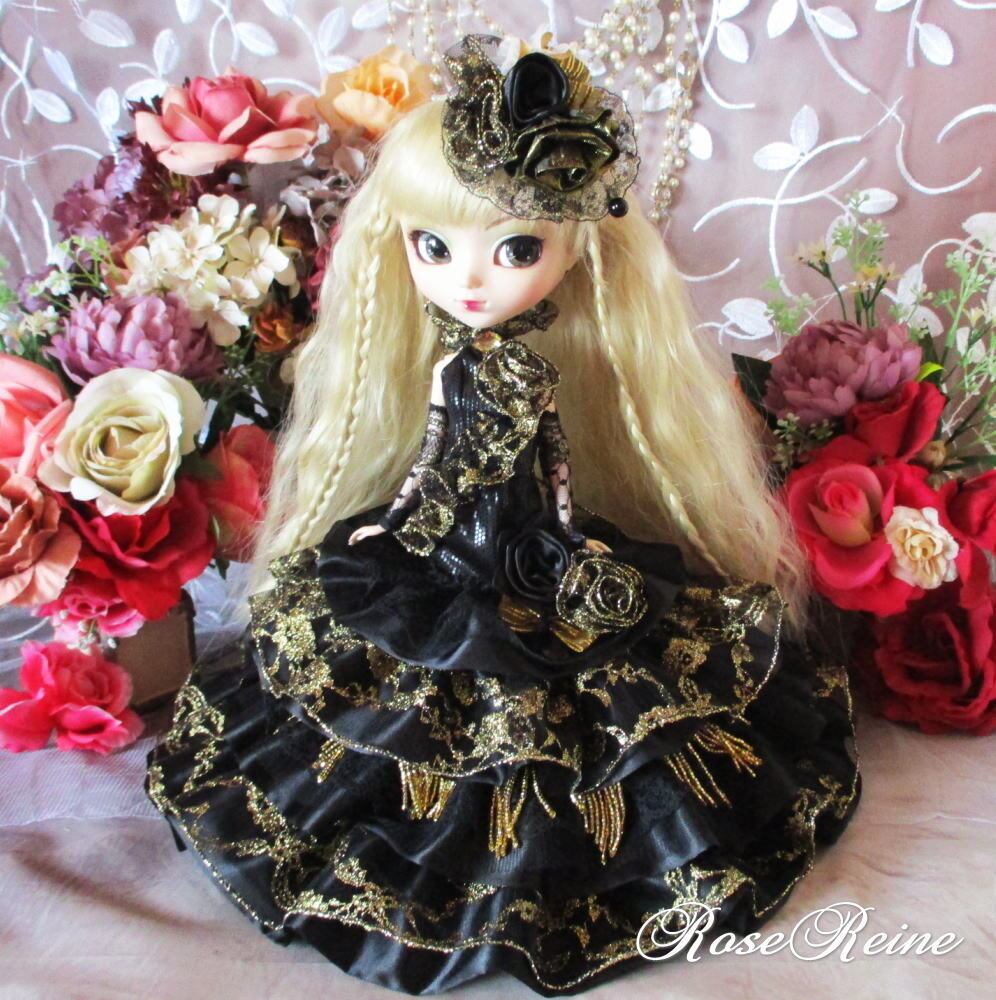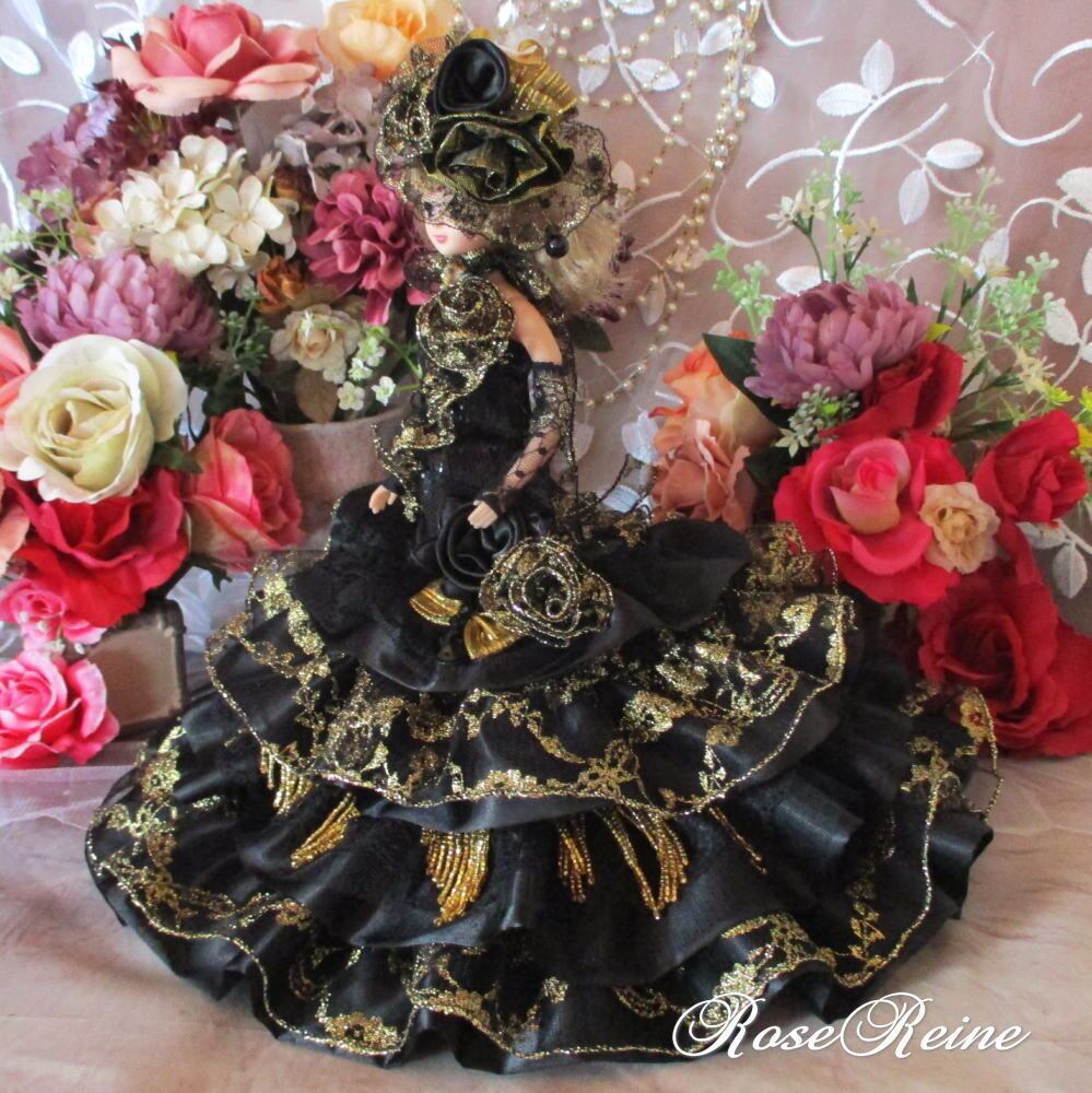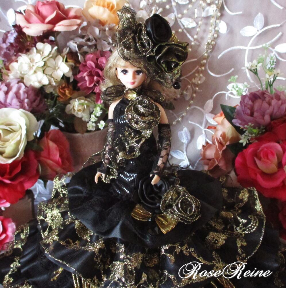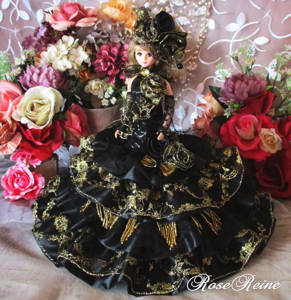 黒麗の王妃 煌めくブラックローズ 華麗なエスプリ装飾のマーメイドドールドレス
