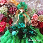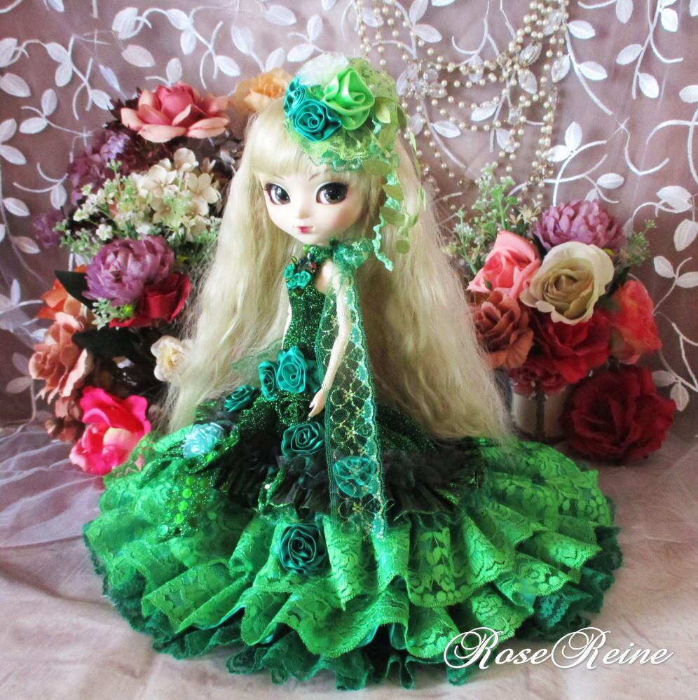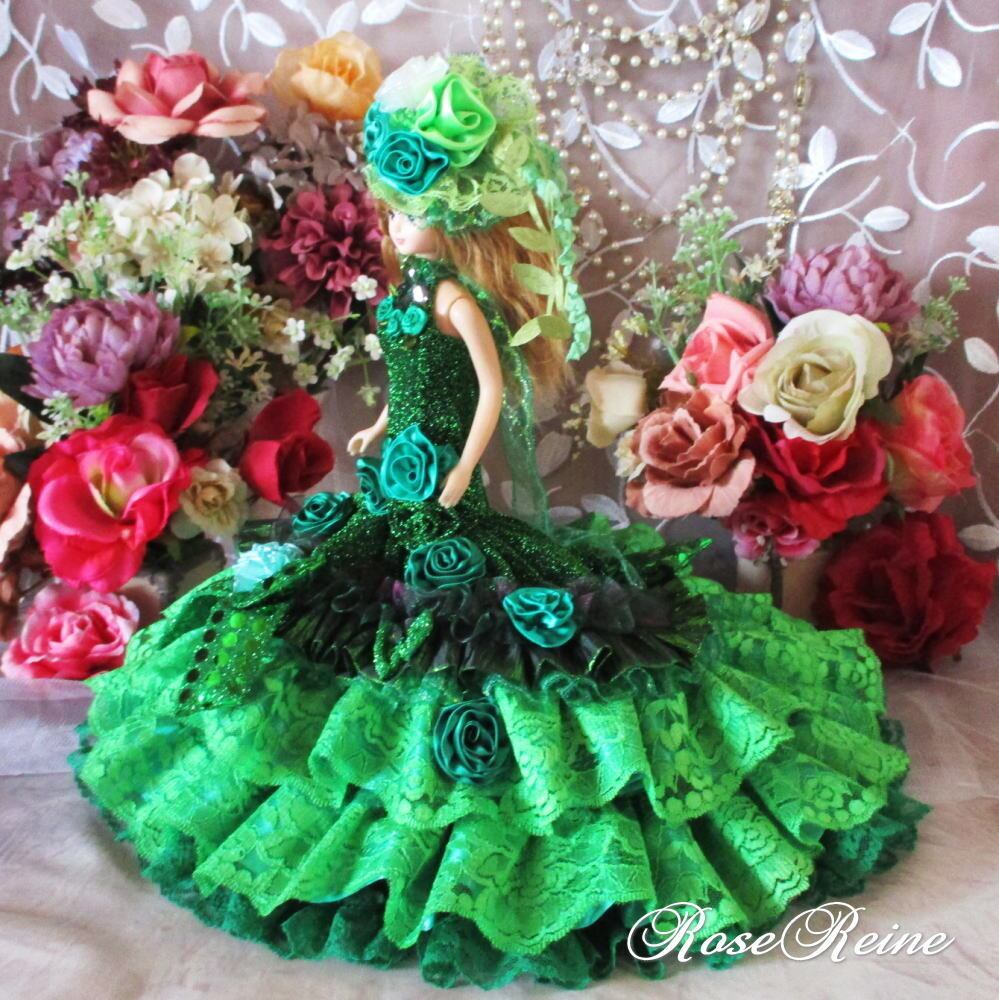 魅惑の妖精 ドラマティックグリーンの華やかな舞踏会マーメイドドールドレス豪華4点セット