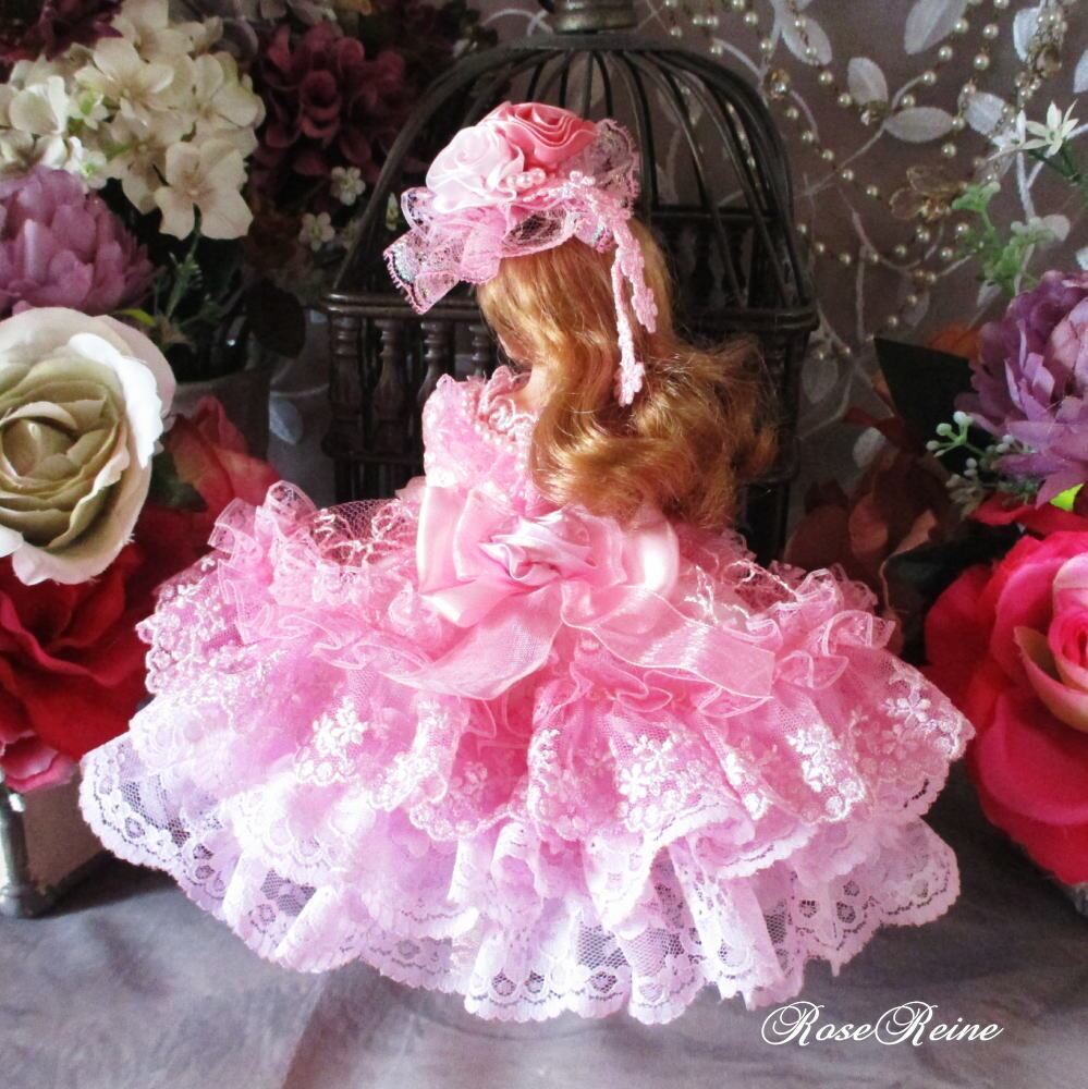 ロリータロマンス キュートな薔薇とパールのフワフワエアリーピンクドールドレス4点セット