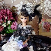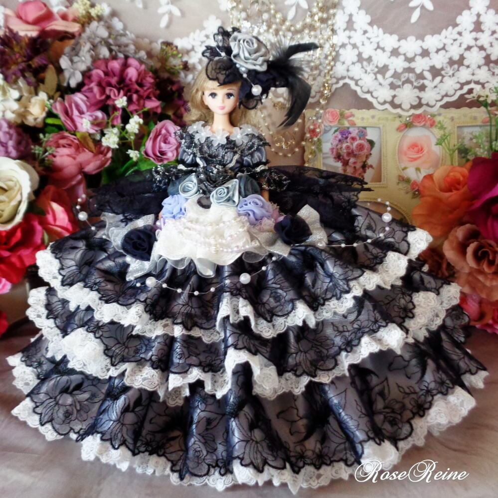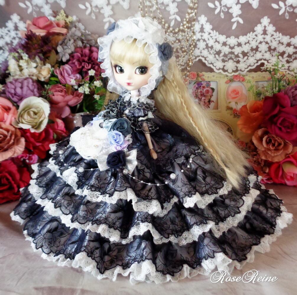 アンネローゼ王妃 シャドーブラックの豪華なボリュームフリル 高貴なプリンセスドールドレス豪華4点セット