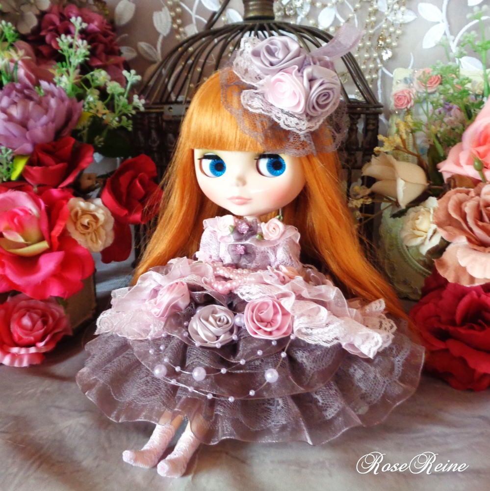 ロリータロマンス クラシカルモーブピンクのロココ調ボンネットドールドレス豪華5点セット