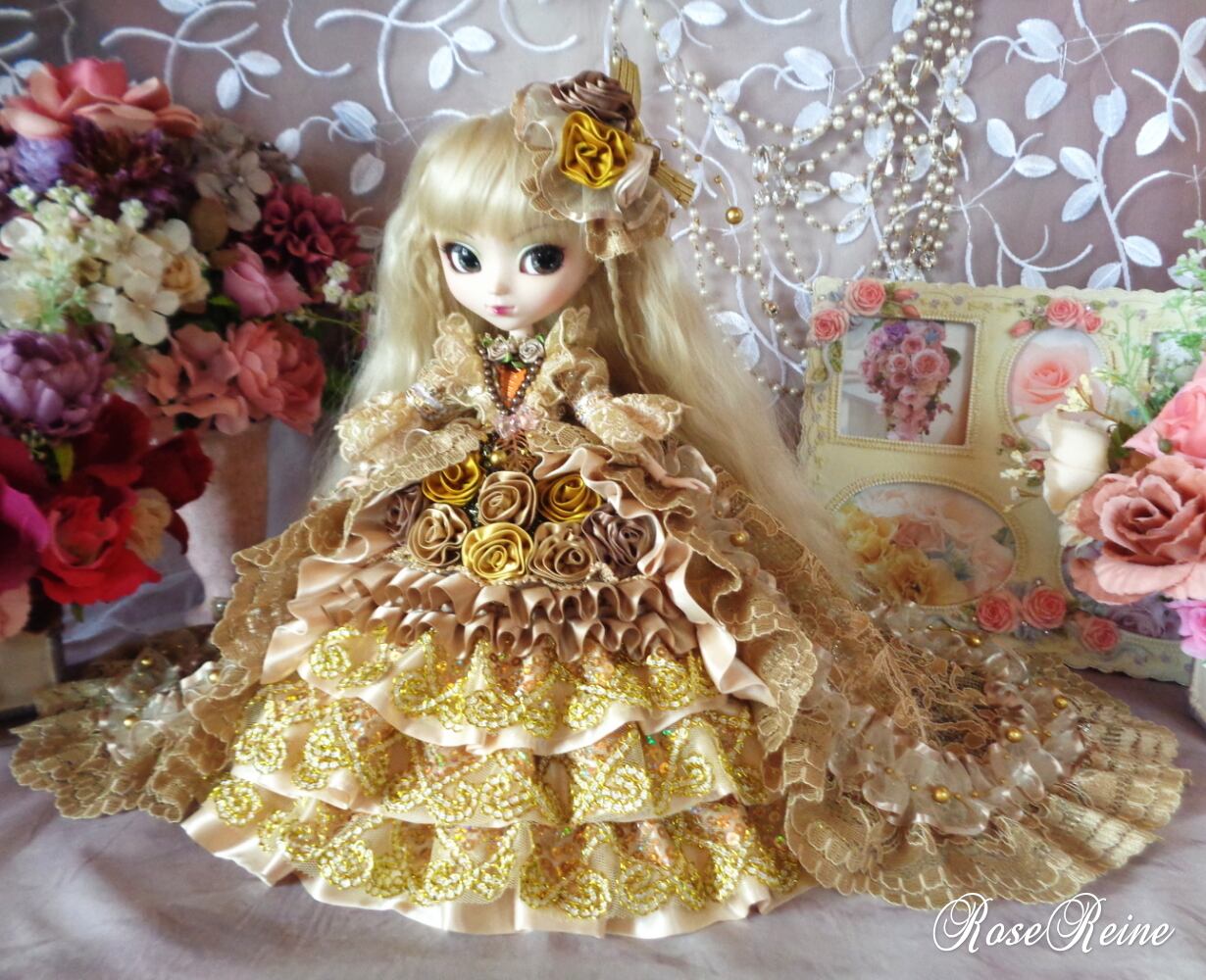 ロングトレーンプリンセスドールドレスです