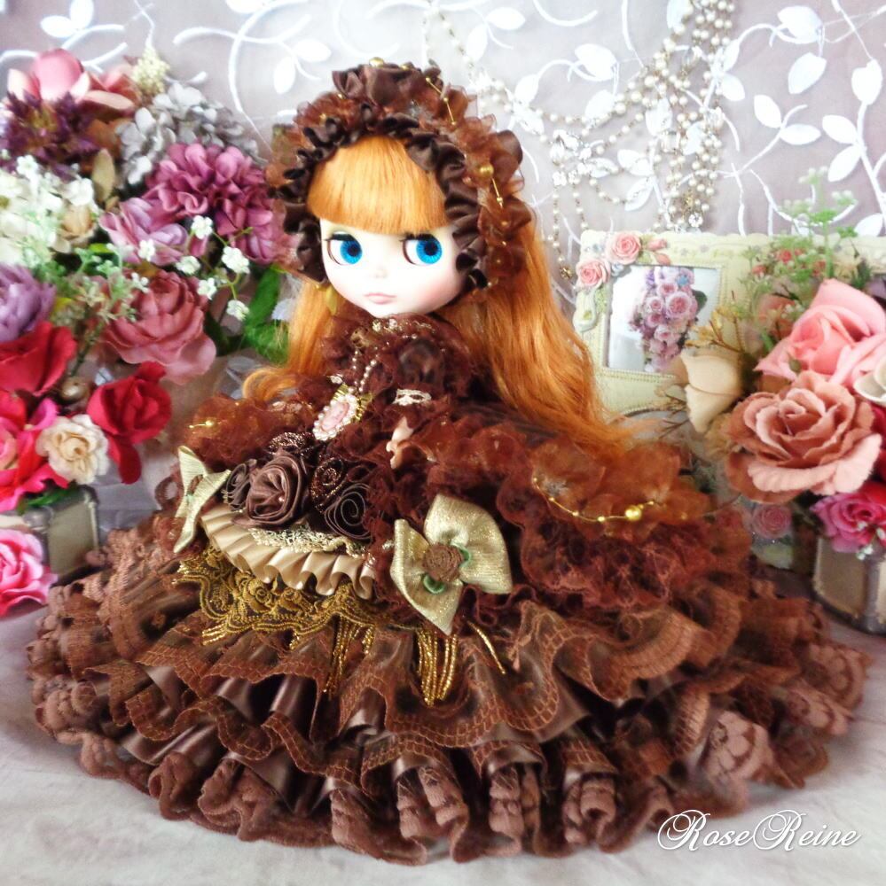 マリーアントワネット王妃 シックなビターブラウンカラーの美シルエットが高貴な気品溢れるプリンセスドールドレス豪華4点セット