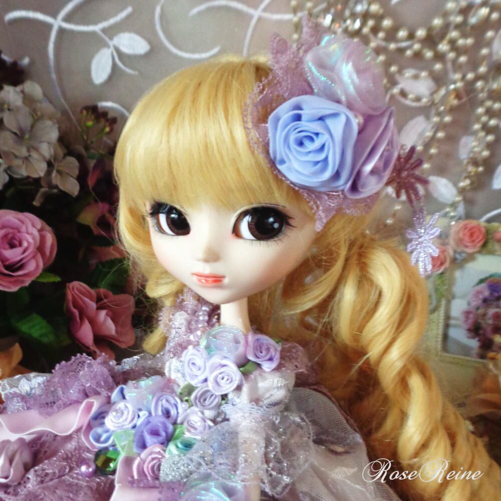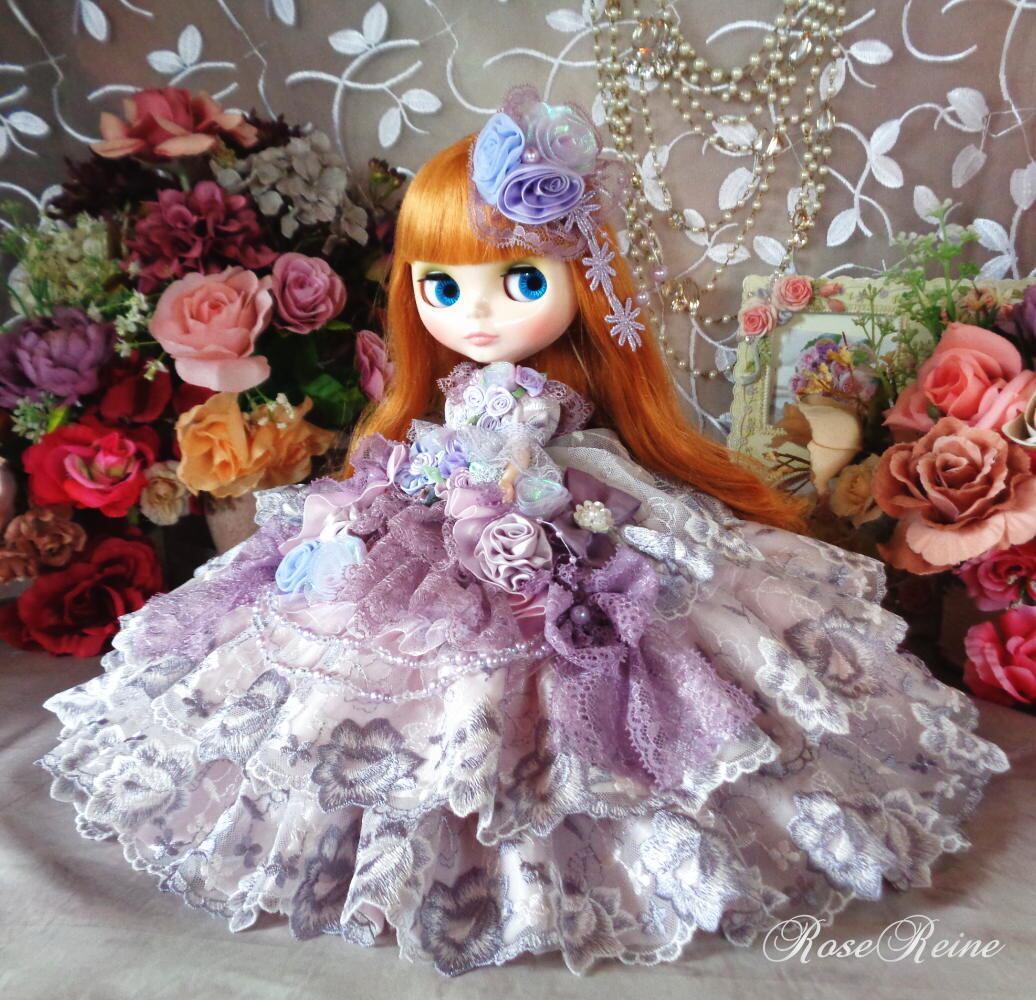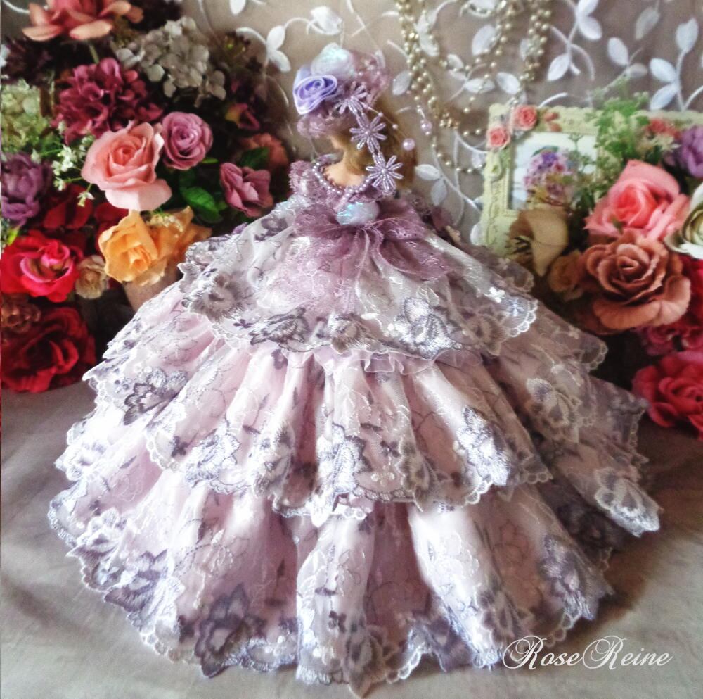 エリザベス女王 薔薇のほほえみ パープルシルバーのボリュームフリルドールドレス
