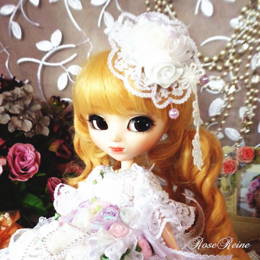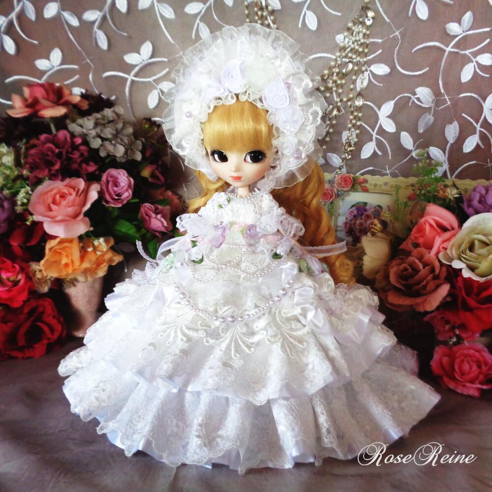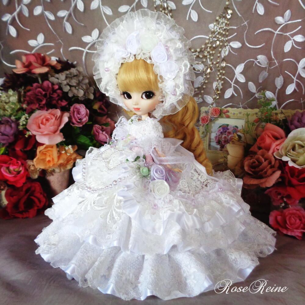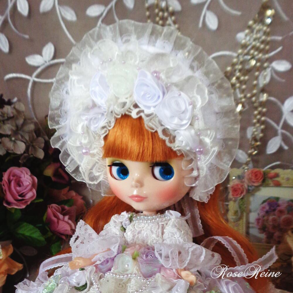 マリーアントワネット 夢見るボンネットの花飾りホワイトフリルドールドレス
