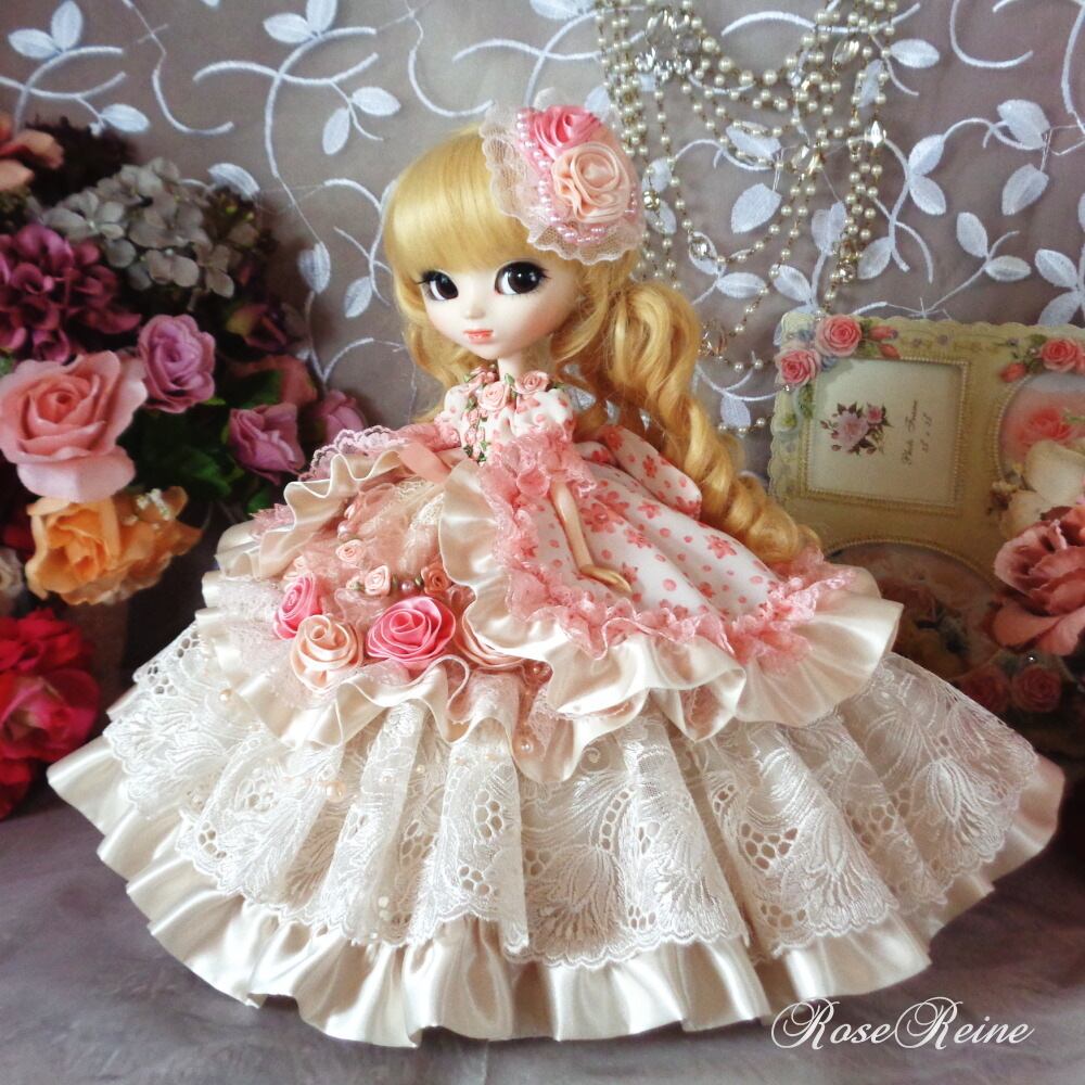 グレース王妃 桜の園 シャーベット&アンティークピンクのフリルドールドレス