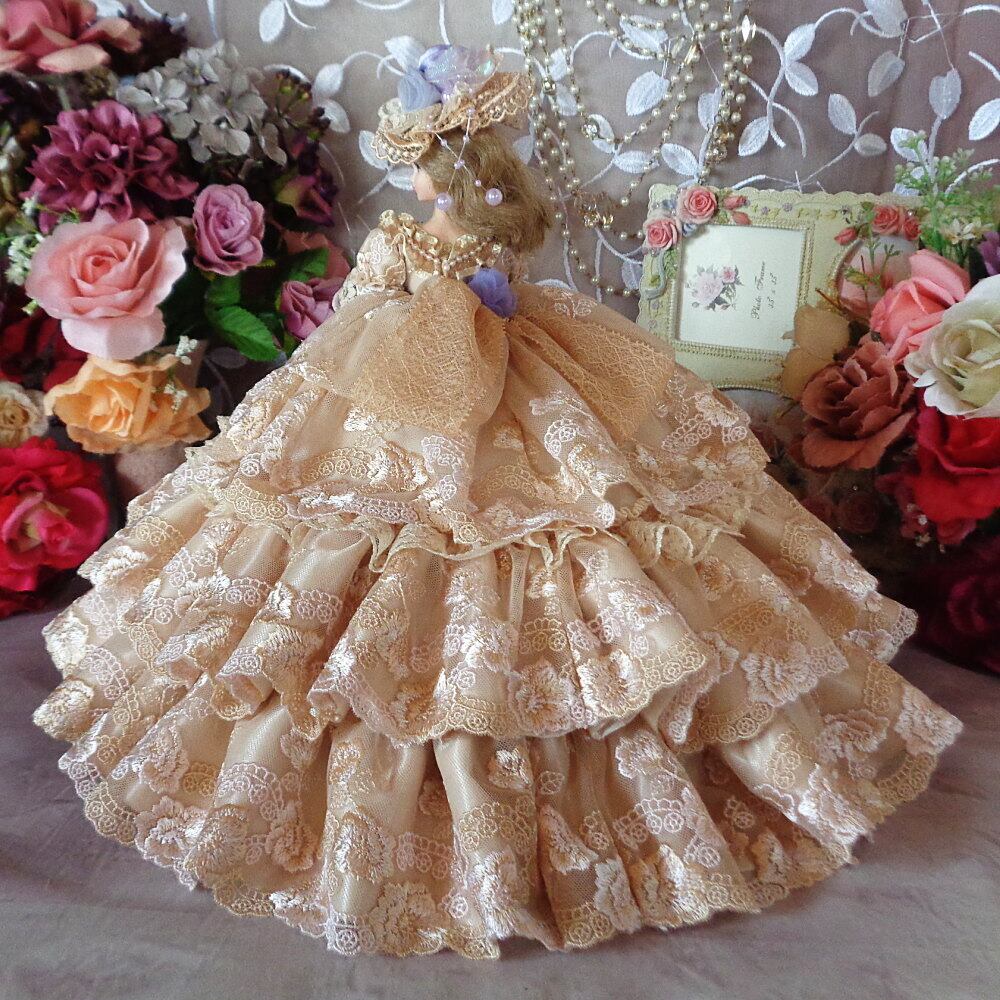 宮廷舞踏会の光輝 シャンパンカラーとパープルの花園 ボリュームフリルドールドレス