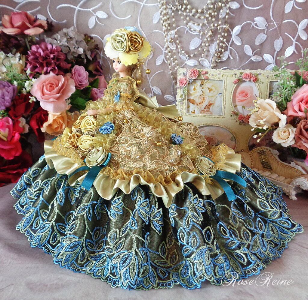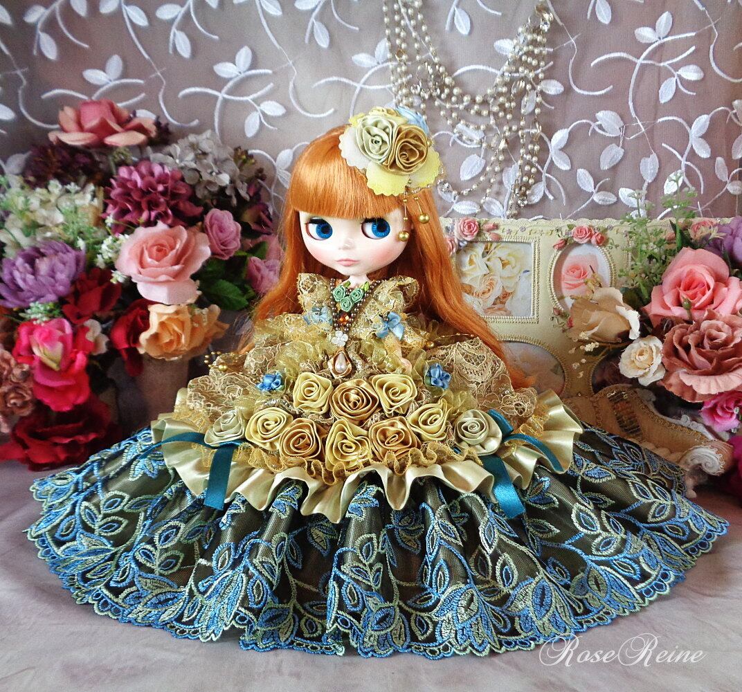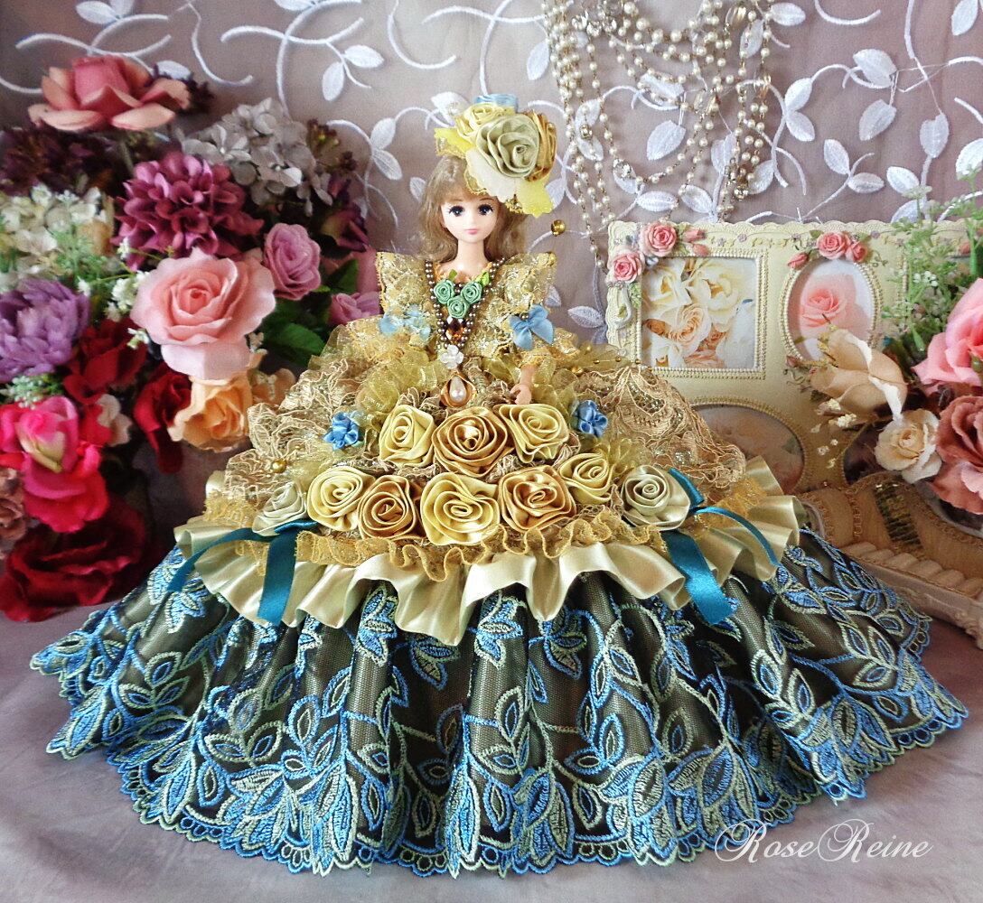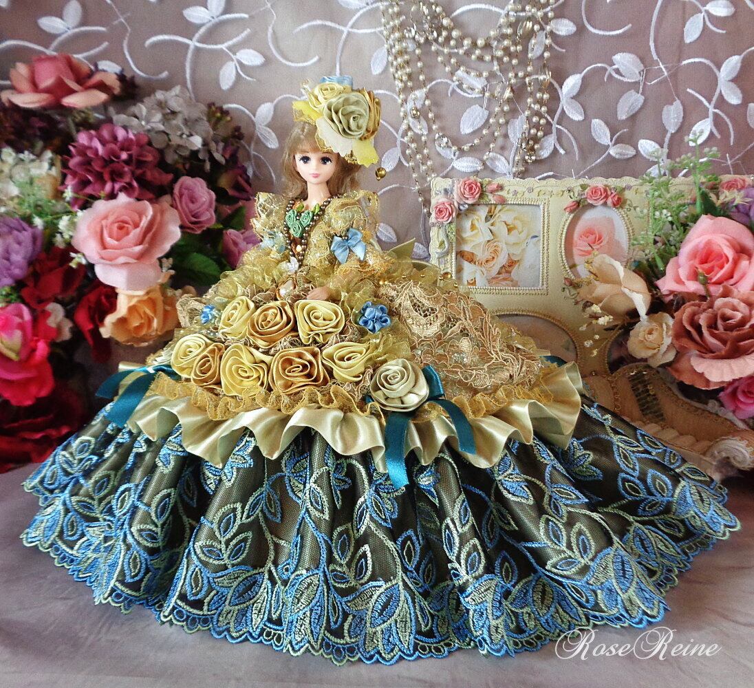 美しきルノワールの世界 アンティークゴールドのタッキングフリルドールドレス