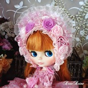 ロリータロマンス クラシカルピンクのボンネット付ボリュームフリルドレス