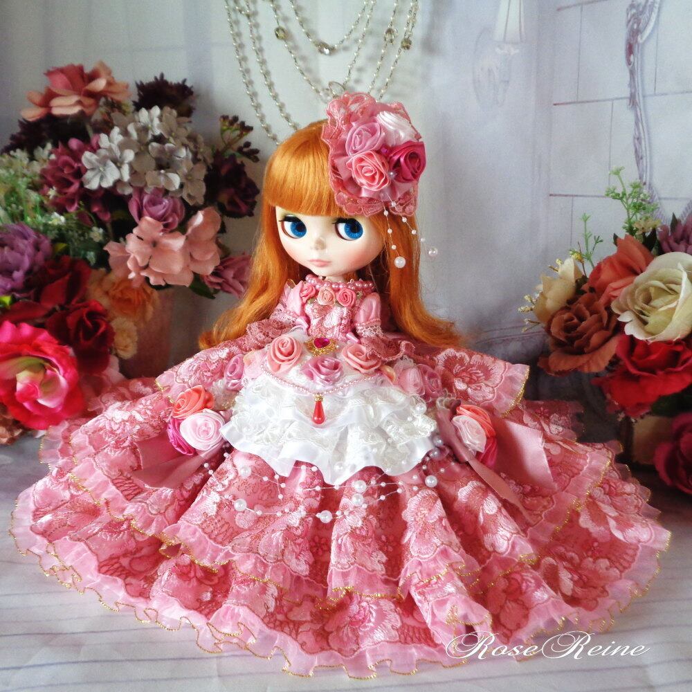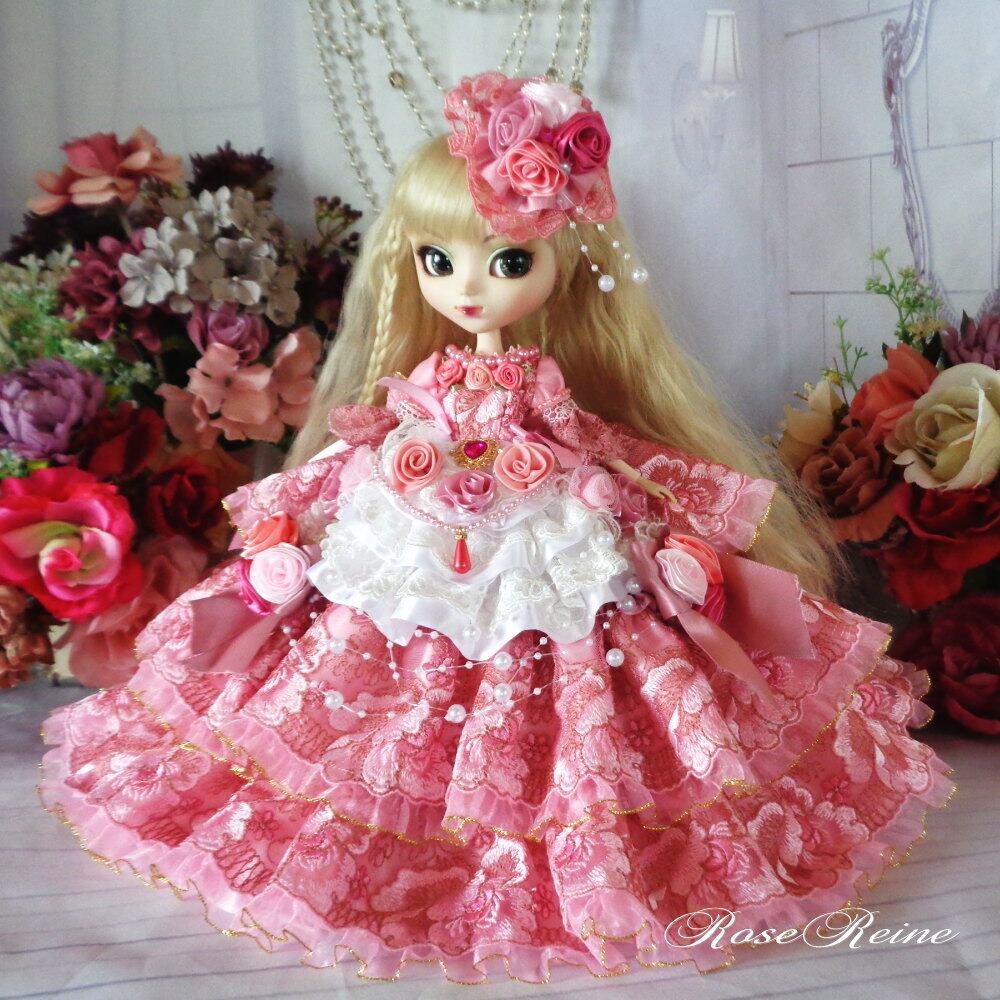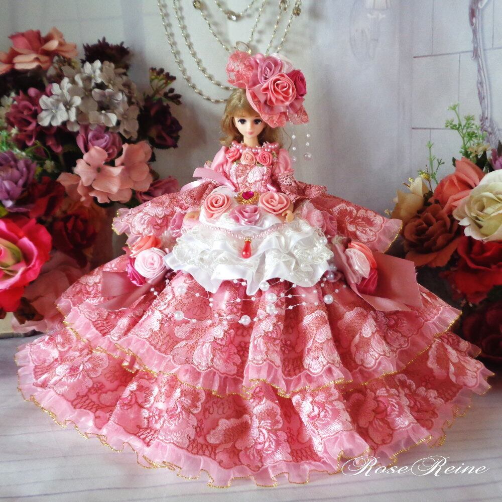 ローゼンレーヌ王妃 湖畔に輝くニュアンスピンクの金糸ボリュームフリルドールドレス