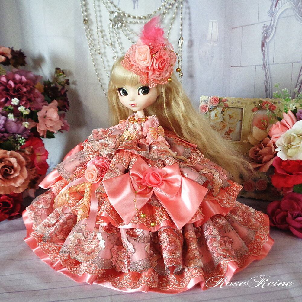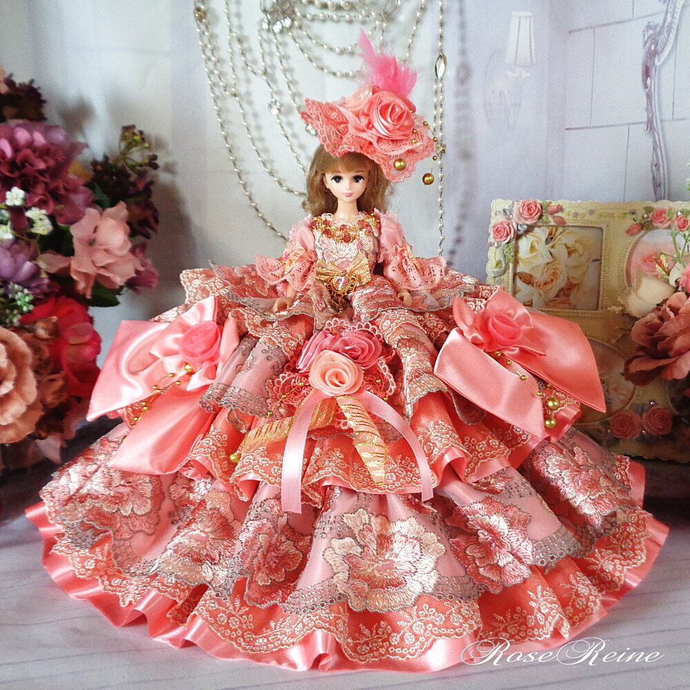王妃 マリーアントワネット 可憐なシャイニーコーラルピンクのティアードボリュームフリルドールドレス